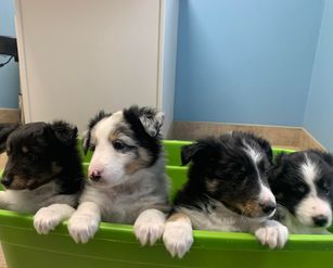 Our puppies include black white and tan, blue merle white and tan, blue merle and white, and black and white. Colors will vary depending on the parent dogs.