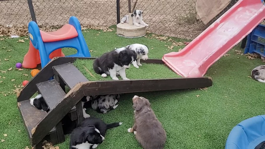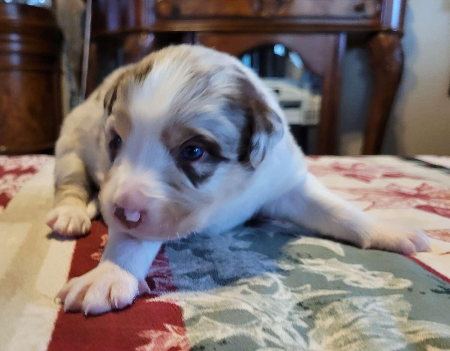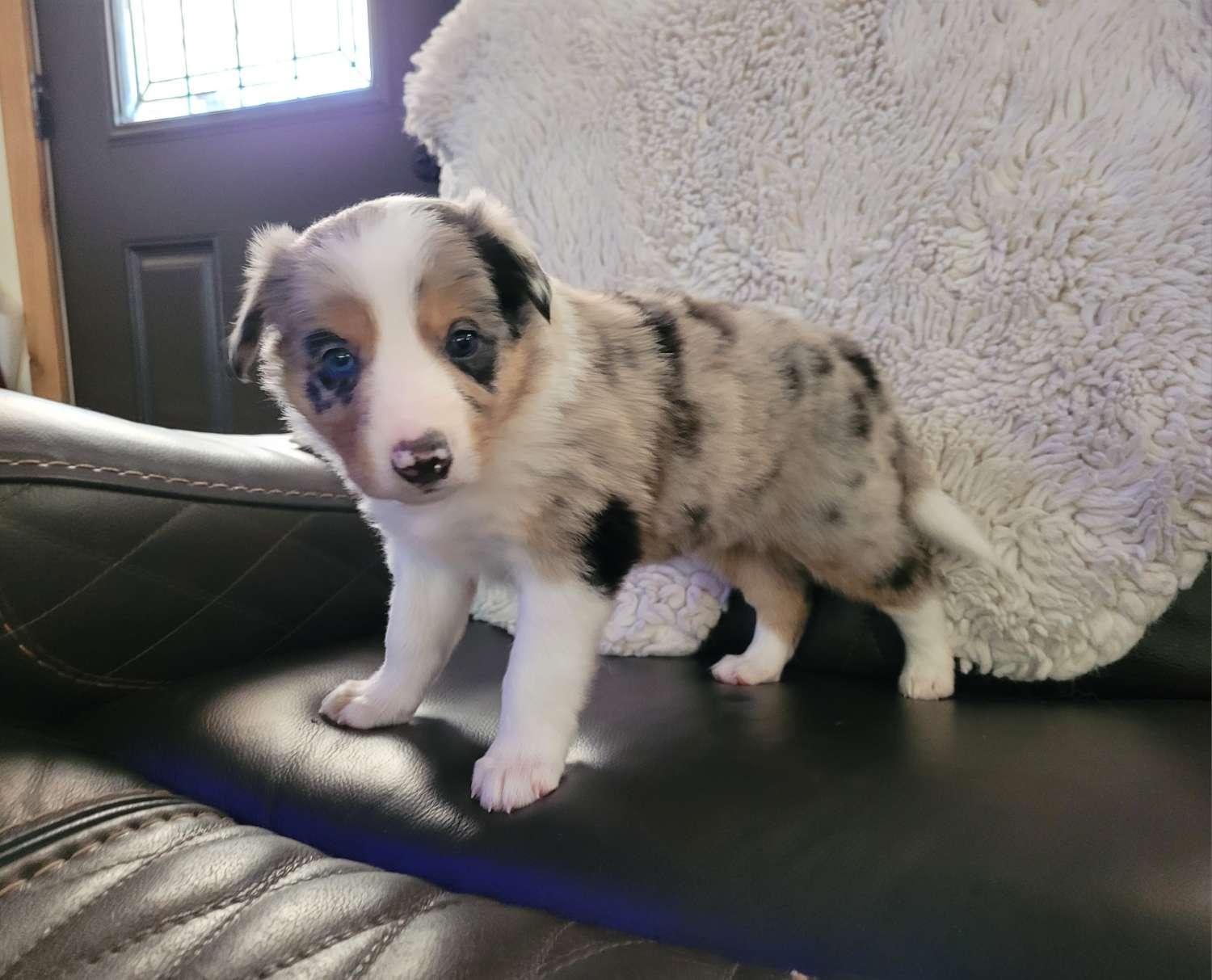 Our puppies include tri-color, slate merle, black and white, blue merle, red merle, sable, and sable merle. Colors will vary depending on the parent dogs.