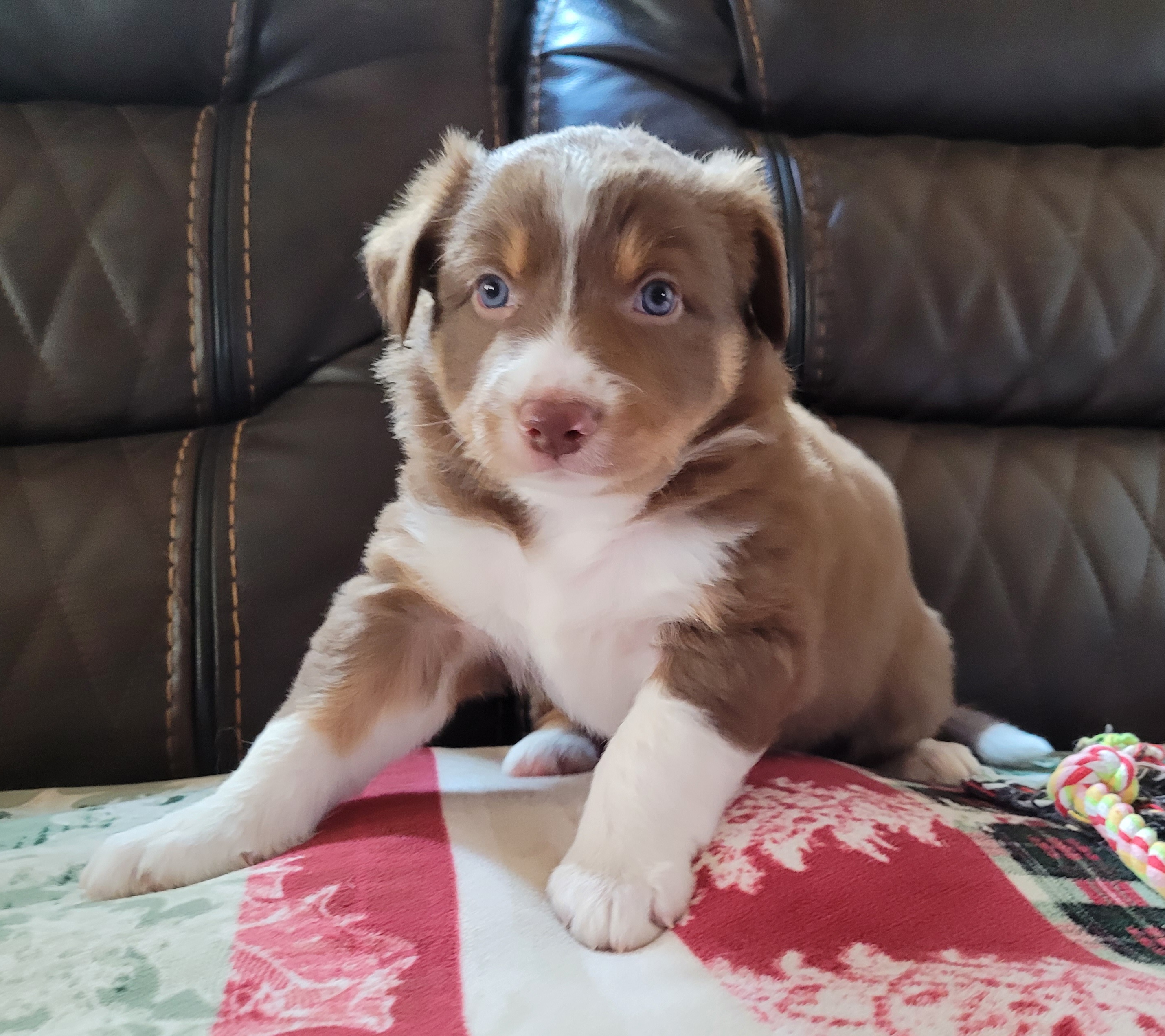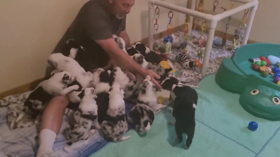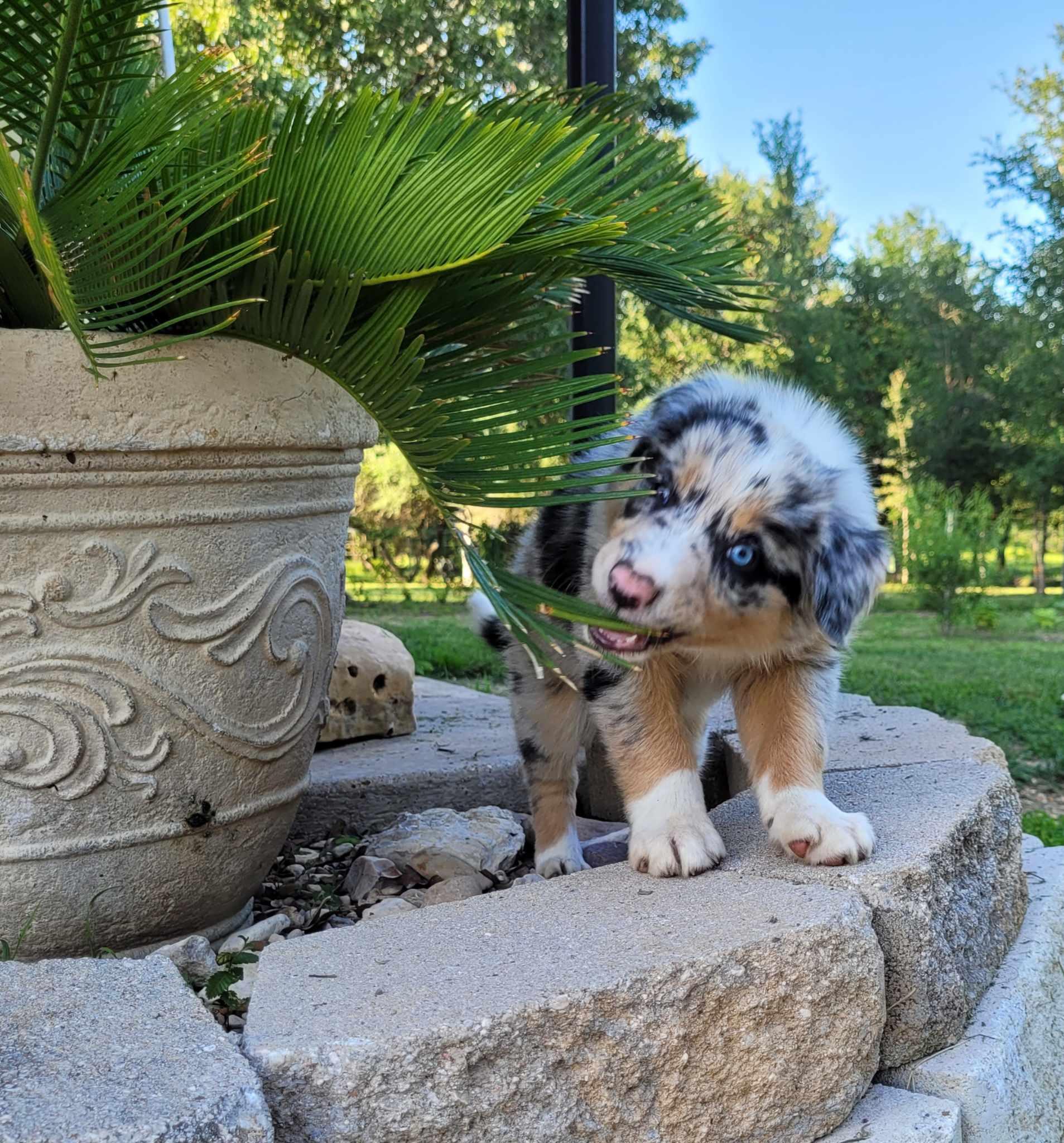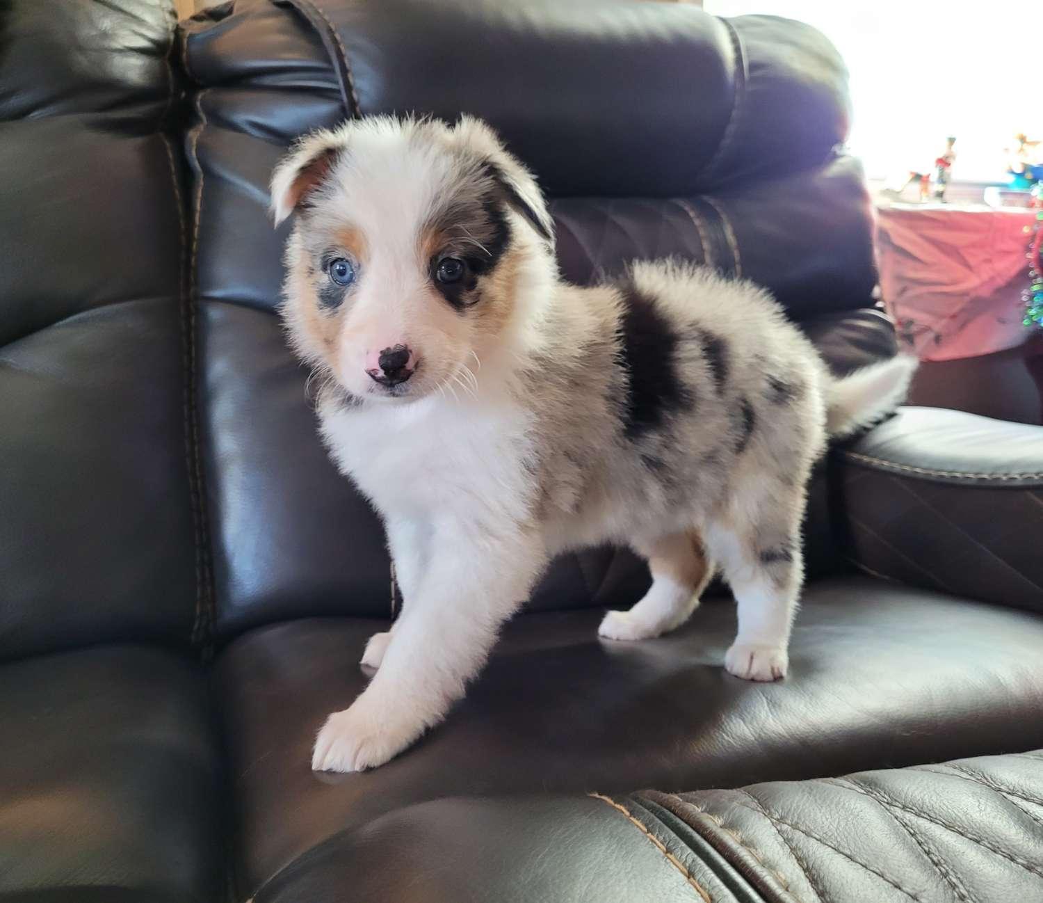 Our puppies include tri-color, slate merle, black and white, blue merle, red merle, sable, and sable merle. Colors will vary depending on the parent dogs.