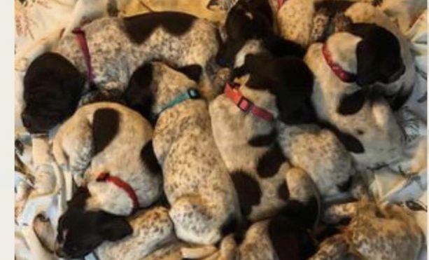 Our German Shorthaired Pointer puppies are liver and white. German Wirehaired Pointer puppies are liver and white. Colors will vary depending on the parent dogs.