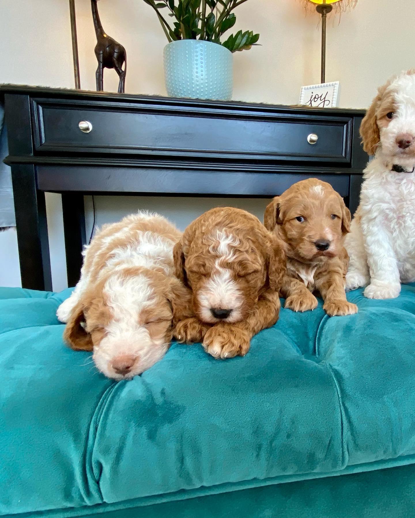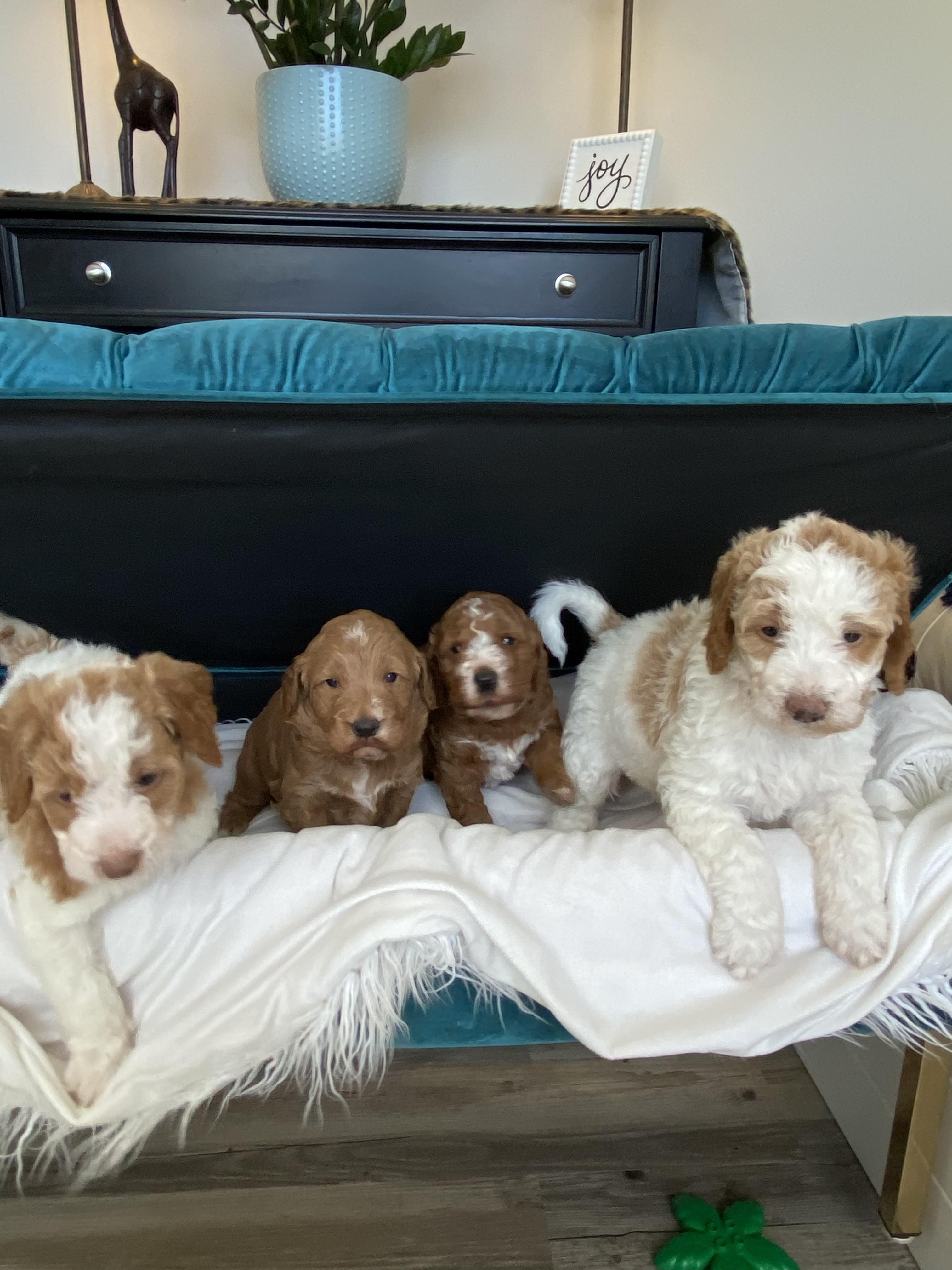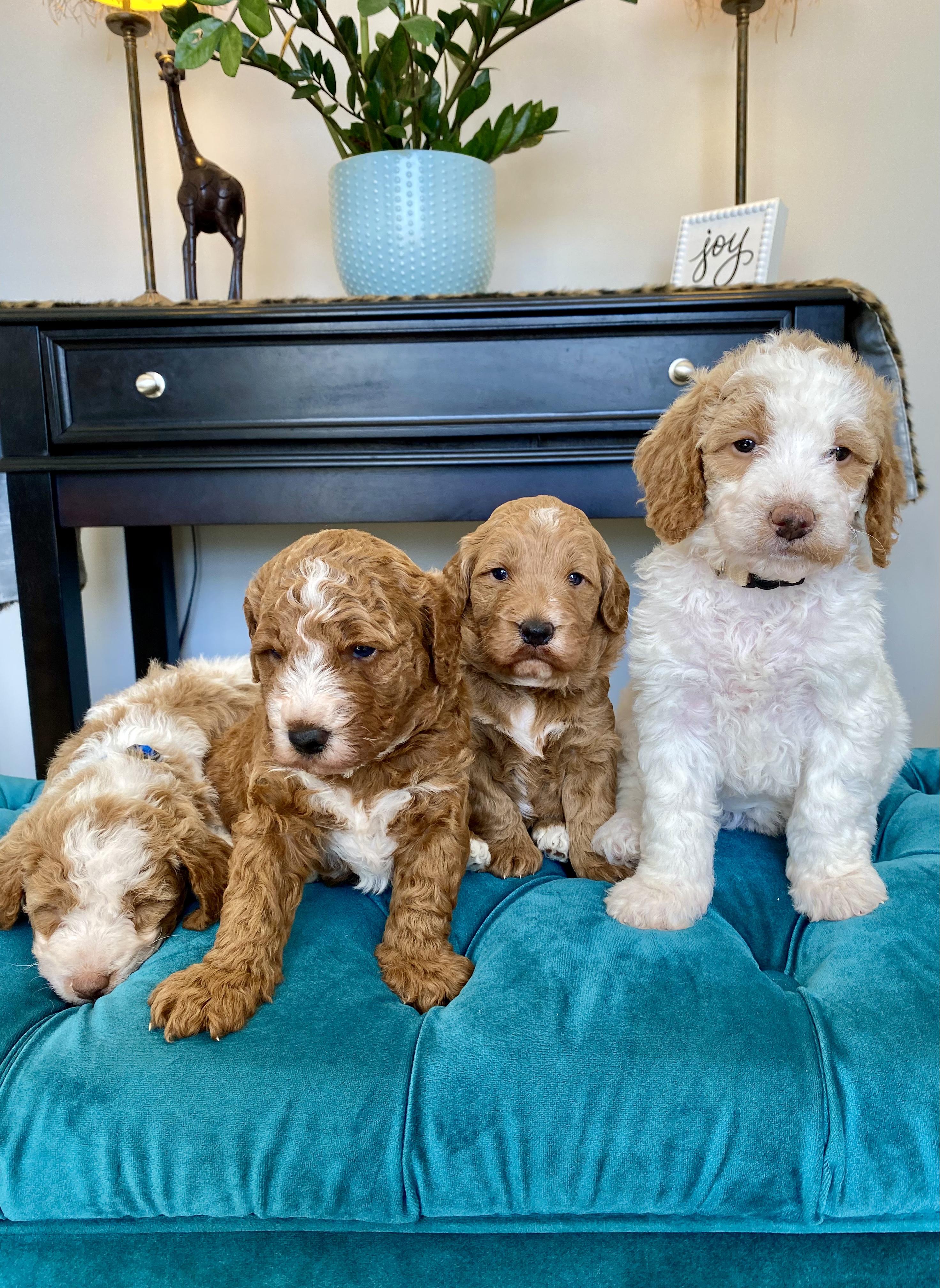 Our puppies include cream, apricot, red, and black. Colors will vary depending on the parent dogs.