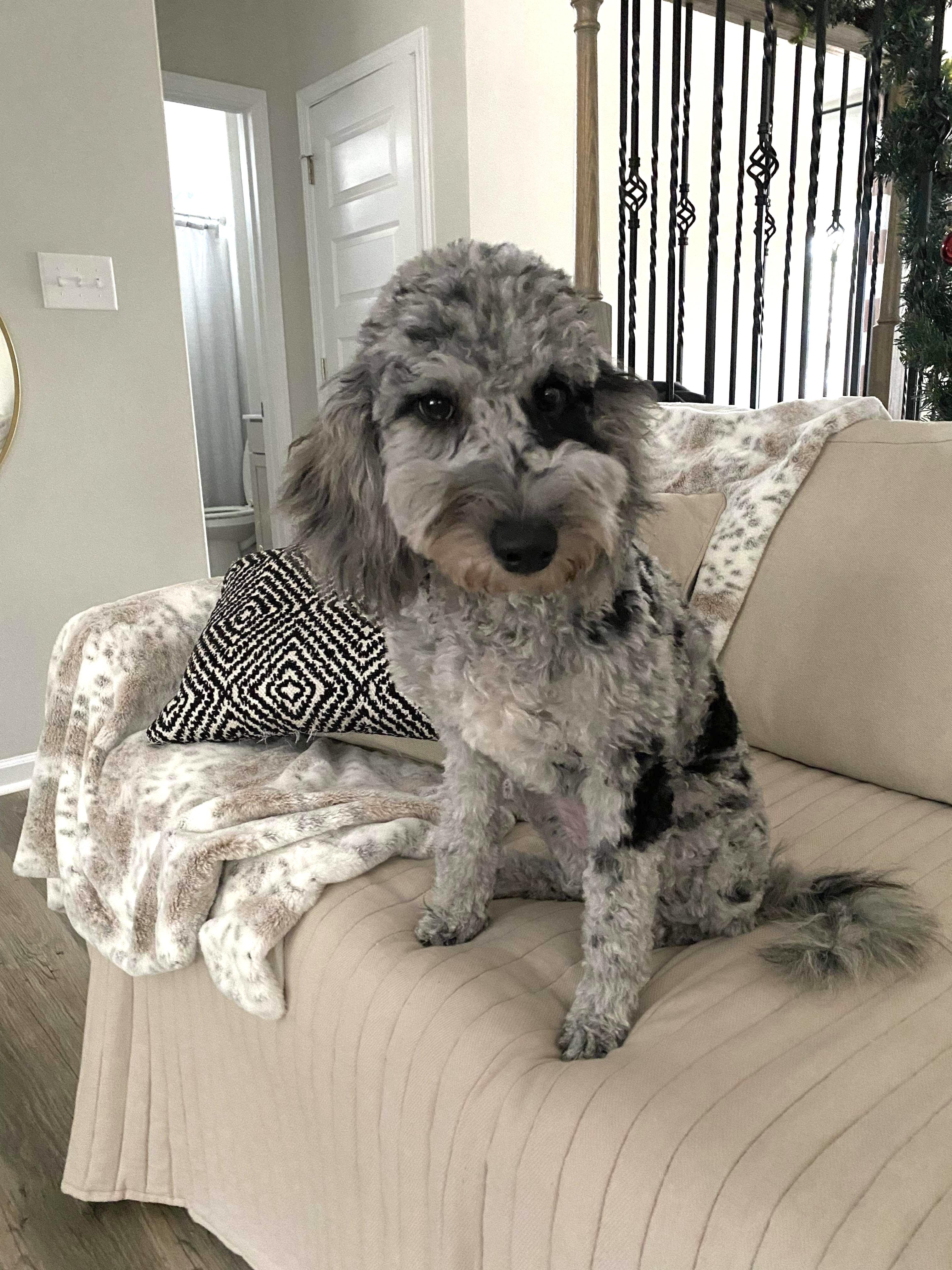 Spencer is a male Goldendoodle. Carefully selected as a great representative of his breed, Michele decided to make him part of their program. Michele has passed Good Dog’s screening process, which involved a review of their breeding practices, environment, and the mental and physical health of their dogs.