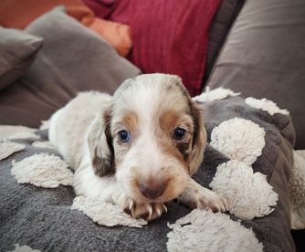 I'm Lizzy B., the breeder behind Short Stuff Doxies located in Castalia, NC. Our dachshunds are part of our family and are raised in our home as part of the family. Our puppies enjoy daily interaction with our 4 young children. We also have a sheep dog, cats, and farm animals they will be introduced to before going to their new homes giving them a well-rounded socialization.