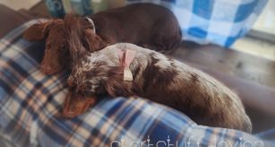 I have liked Dachshunds since I was young, but it wasn't until my 2nd year of marriage that my husband adopted our first dachshund baby. I have fallen in love with the breed and do regular research on everything dachshund. True to the saying, "You can never have just one dachshund", it wasn't long before we had another sweet little one. I started breeding to share my love of the breed with family.