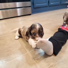 Meet Brynlie our first miniature wire-haired dachshund. She is a sweet, playful pup that loves belly rubs. We are looking forward to watching this girl grow and adapt to her new home.