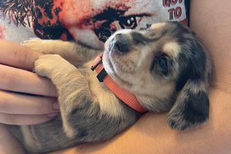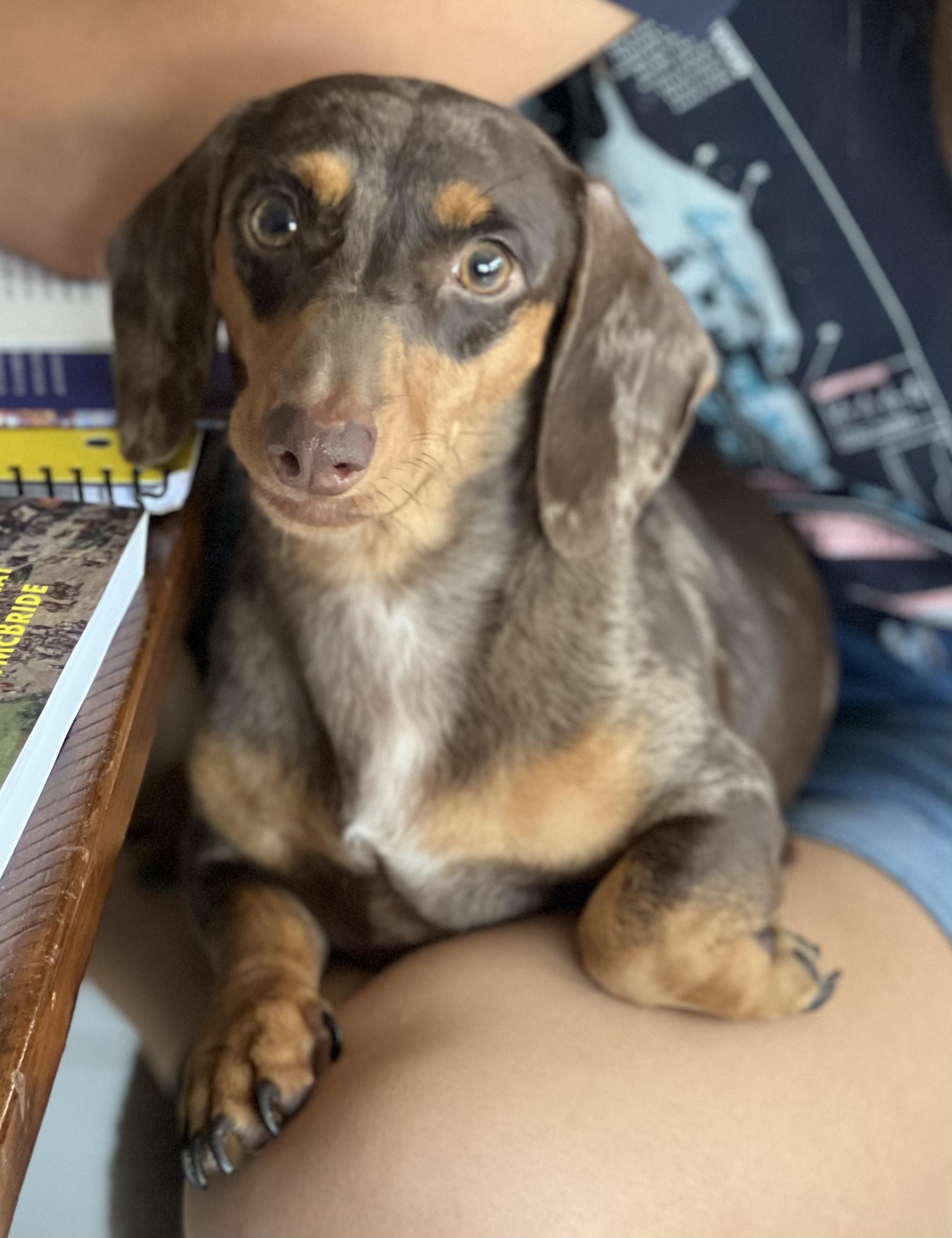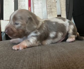 Leota is a lilac dapple miniature dachshund that weighs 7 lbs. She is a very loving, even tempered girl.
