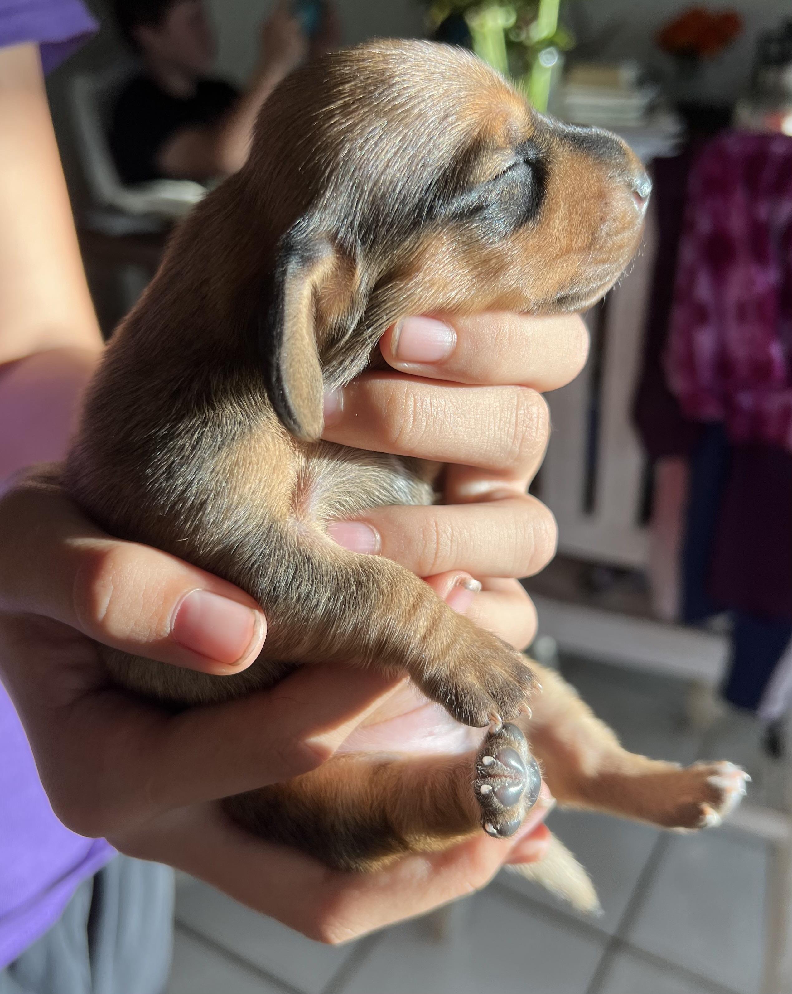 I'm Ameila M., the breeder behind Shotzie Doxie Co. located in Lady Lake, FL. We are a home breeding program that produces occasional litters from health tested parents. We are focused on producing high-quality and healthy puppies for loving homes and the occasional show placement. We have long and short hair. We show our dogs in conformation, agility, & earth dog trials.