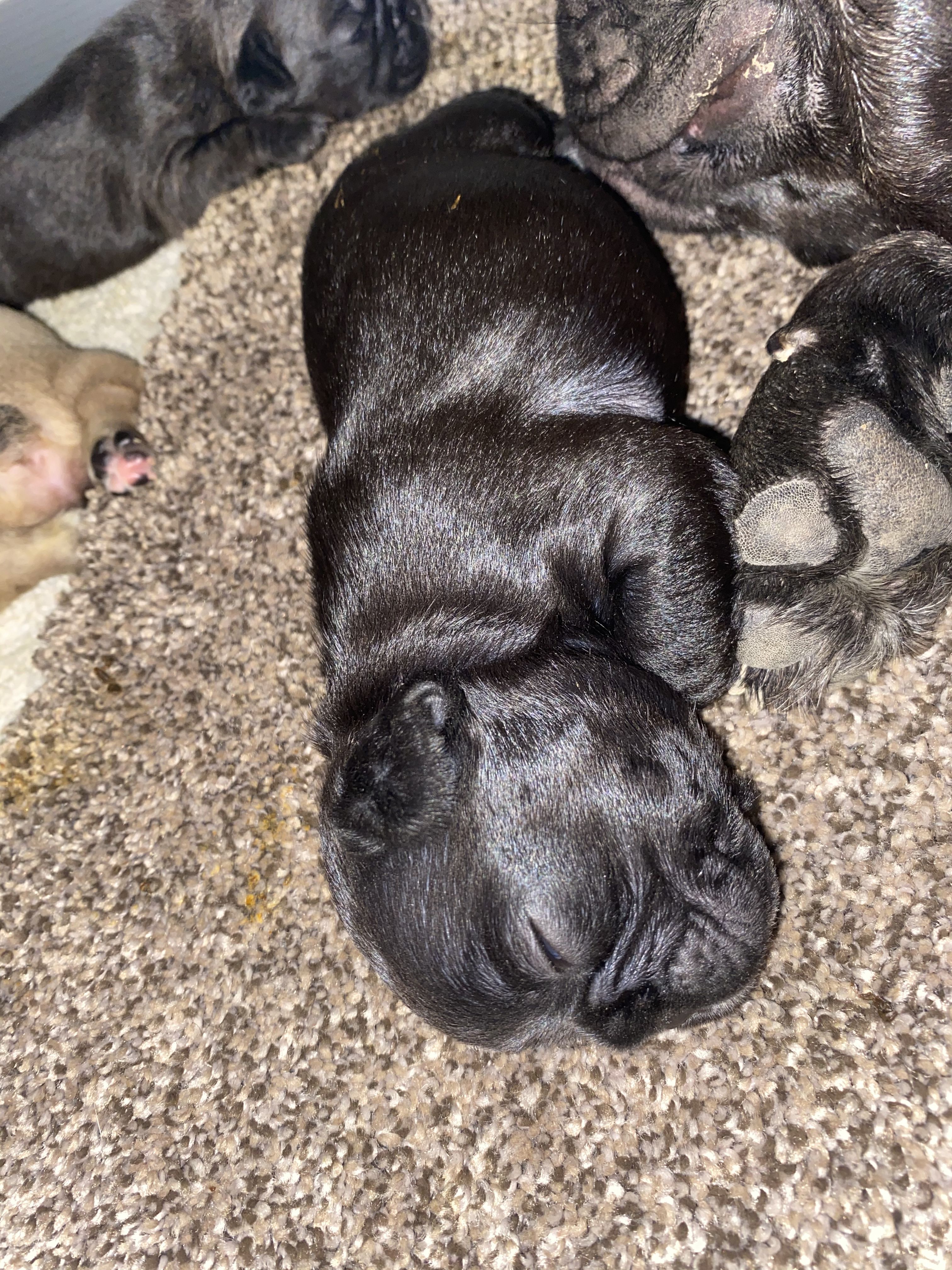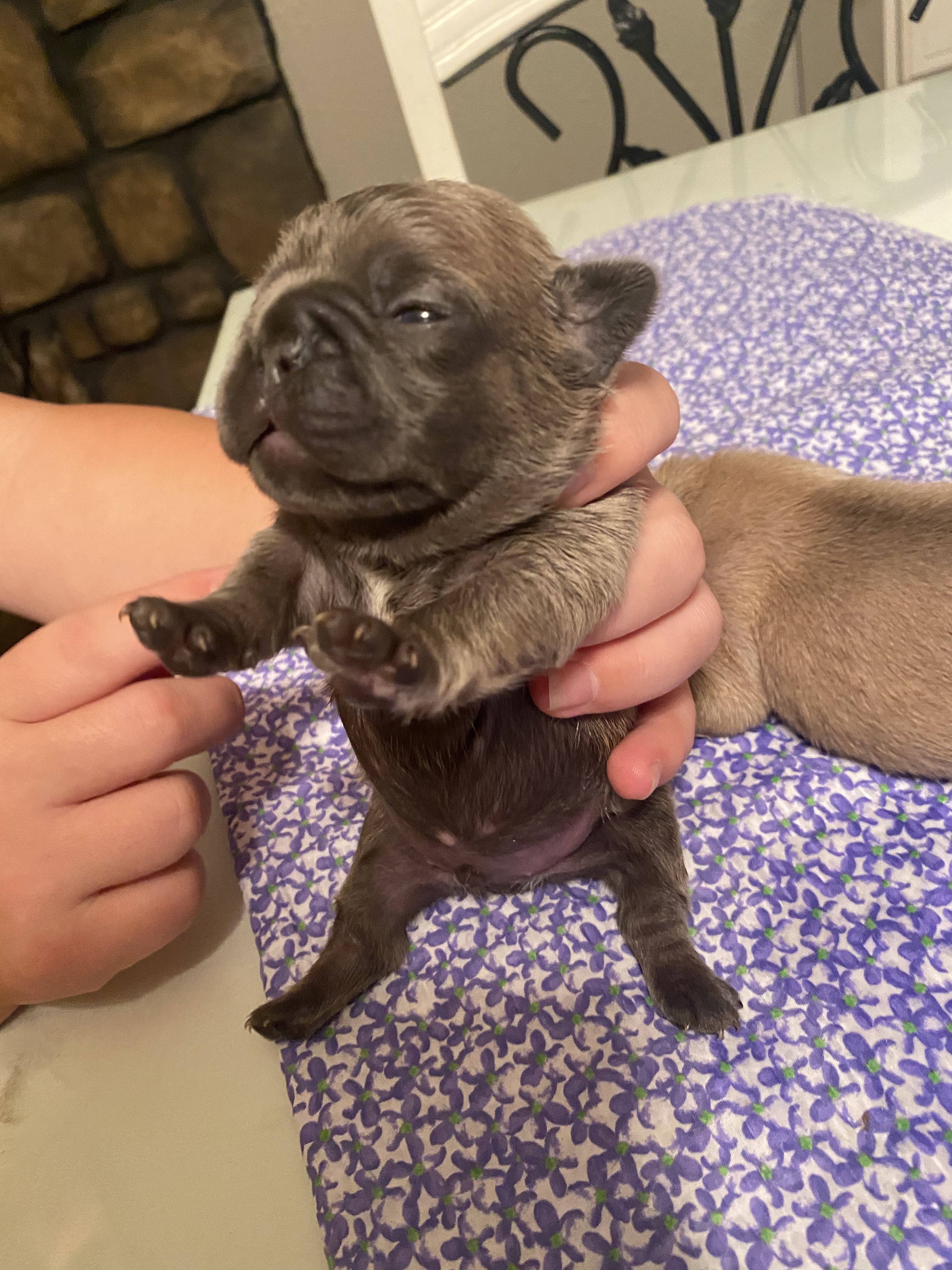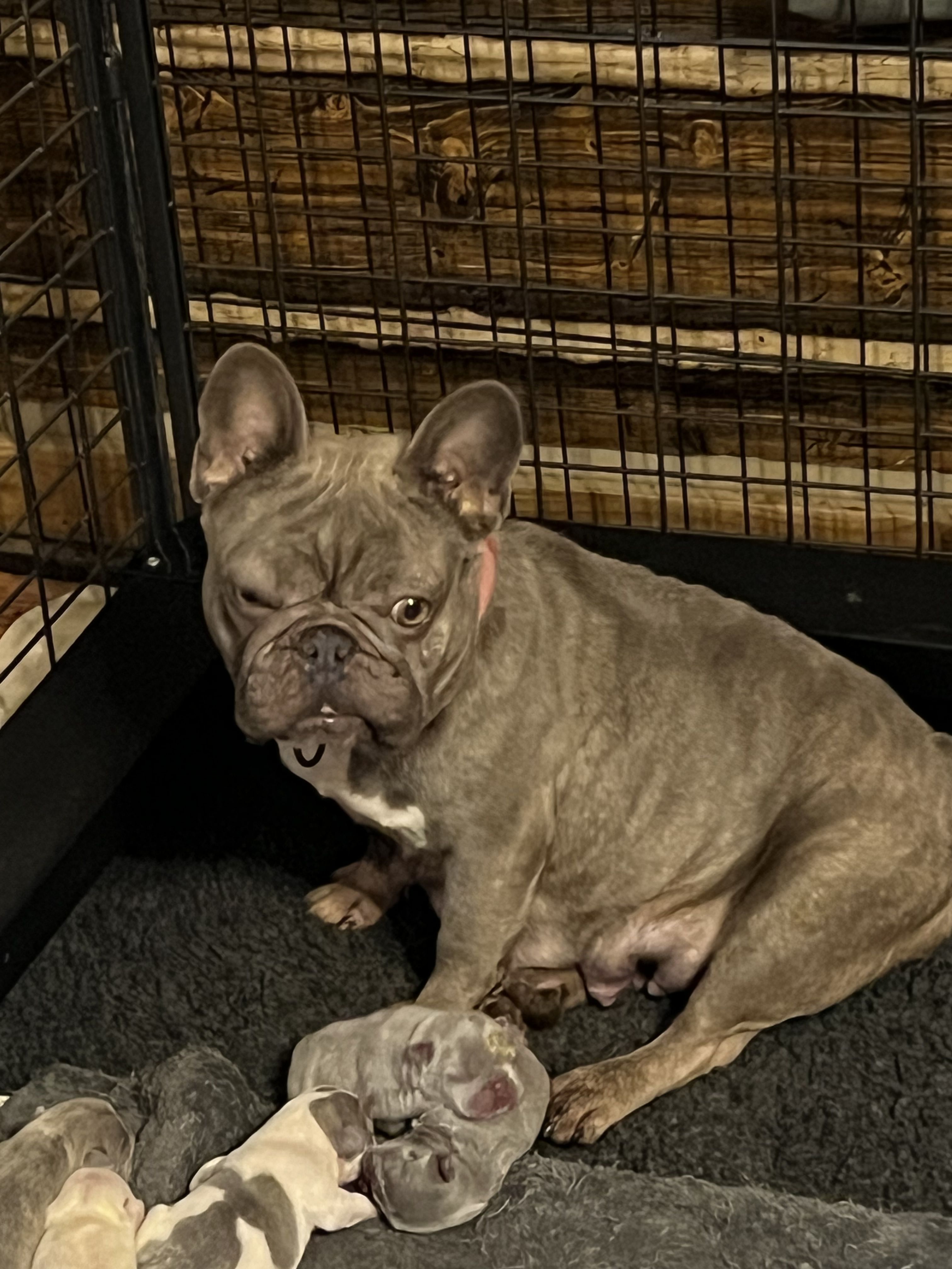 Our French Bulldog puppies include brindle, cream, and fawn. Colors will vary depending on the parent dogs.