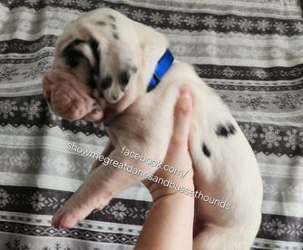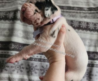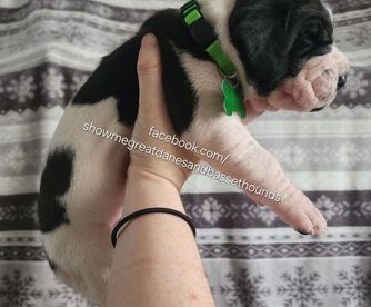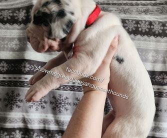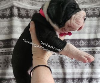 I'm Kala F., the breeder behind Show Me Great Danes and Basset Hounds located in Alton, IL. Midwest dog breeder, with focus on personal relationships with adopters, puppies raised in-home, and healthy breeding practices. At Show Me Great Danes and Basset Hounds we pride ourselves in producing happy, healthy, and quality puppies. Our Dogs are home-raised and are treated as members of our family. We complete full OFA health testing and all-allele color testing on our breeding dogs before breeding. All of our adults and puppies are well socialized with adults, children, cats, chickens and other dogs and training starts at an early age. We strive to ensure our puppies are well rounded and ready for their new lives by the time they leave our home. We use aspects of the puppy culture program, work on basic training and most pups are fully potty pad/ litter trained by the time they leave. We offer lifetime breeder support, from a veterinary driven breeding program run by a breeder who has worked in the field for over 18 years. We have a deep love for the Great Dane and Basset Hound breeds and know that you will too. Welcome to the family!