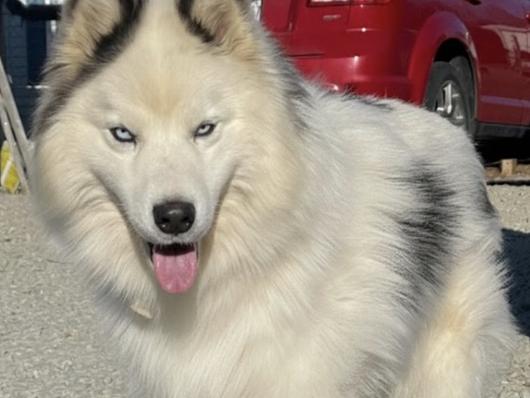 This is Kane—our handsome Wooly piebald Siberian Husky with a heart full of love and a voice he’s never shy to use. With his stunning blue eyes that seem to see right through you and a thick, fluffy coat that begs for cuddles, Kane is the definition of majestic meets goofball. He’s a big softie at heart, always ready to dish out affection and soak up all the attention in return. Whether he’s leaning into you for snuggles or gently placing a paw on your lap, Kane’s love is constant, warm, and impossible to resist. He loves to give you his paw or wave! Kane is more than just a pretty face—he’s a loving, vocal, loyal companion who fills our home with joy, laughter, and just the right amount of chaos💙