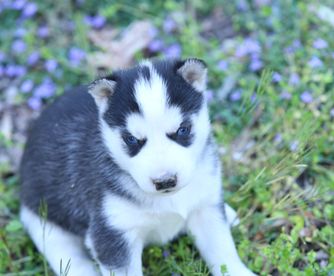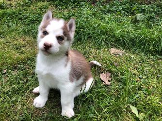 Our puppies include red and white, gray and white, and black and white. Colors will vary depending on the parent dogs.