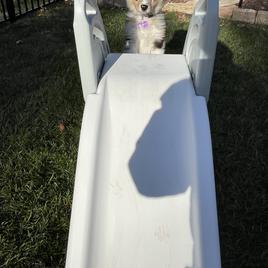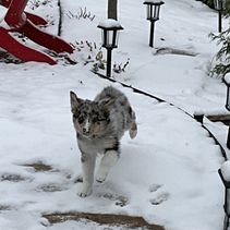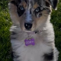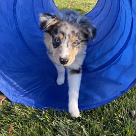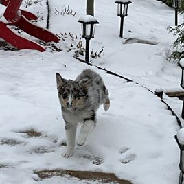 Jamie kept us up to date and responded quickly with answers to our many questions. Zoey Bleu is now 12 weeks old and brings lots of happiness to our family. She currently “comes, sits, rings the bells to go out, goes thru her tunnel and climbs up my grandsons slide” all on her own. Sleeps 6 hours at night before asking to go out. Working on the “teething” stage! OUCH! She is a very smart dog already. Today she has been introduced to snow. She is an absolute joy! Thank you Jamie!