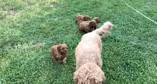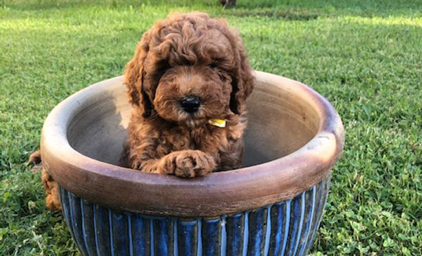 Our Australian Labradoodle puppies include caramel ice, caramel, red, gold, apricot, chalk, chocolate, cafe, lavendar, parchment, black, blue, and silver. Goldendoodle puppies include cream, apricot, red, chocolate, black, and parti. Colors will vary depending on the parent dogs.