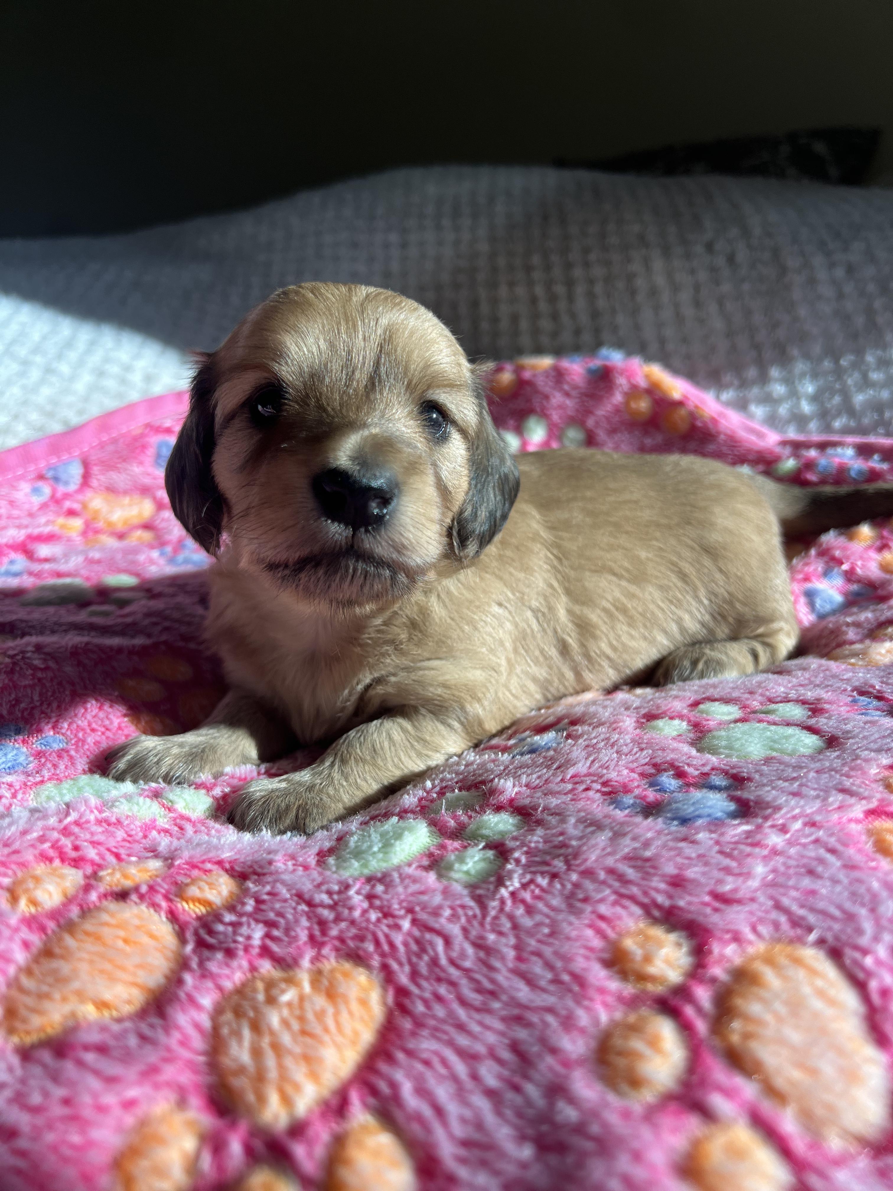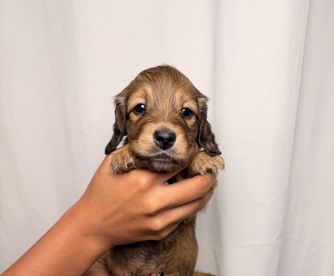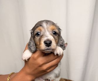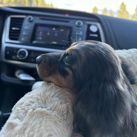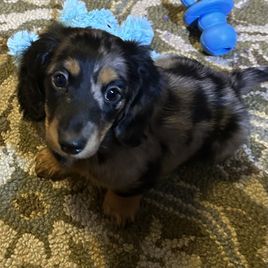 Patricia was a great breeder to work with. She was always quickly responsive to all my questions. She sent update pictures as the puppy grew. He is so happy and healthy. She even gave us some great tips for the ride home & his first night in his forever home. It is clear that she is well informed about the breed & good care for puppies. I definitely would recommend her to anyone looking for a mini Dachshund!