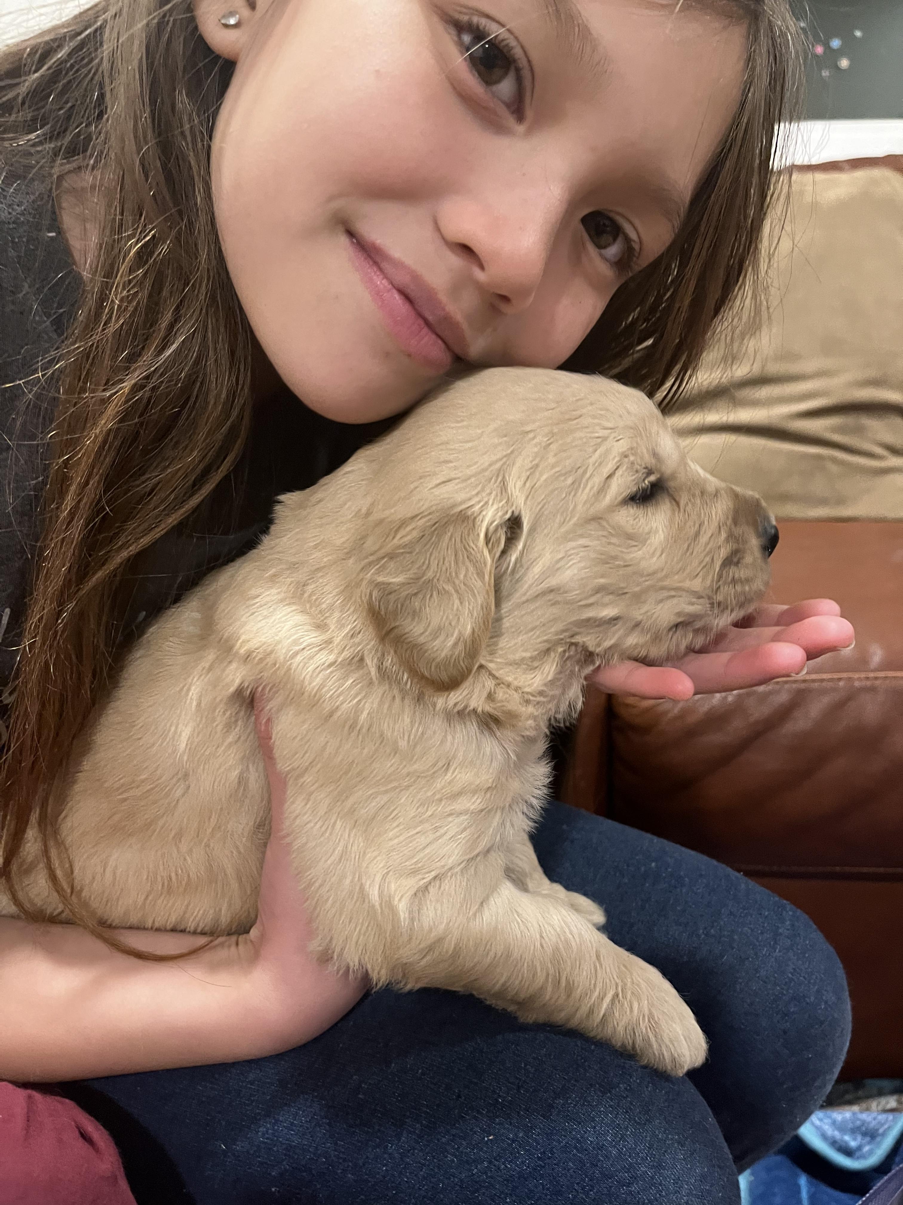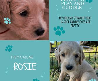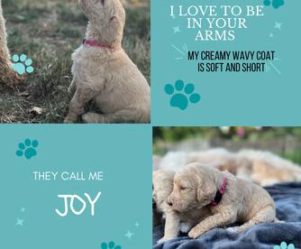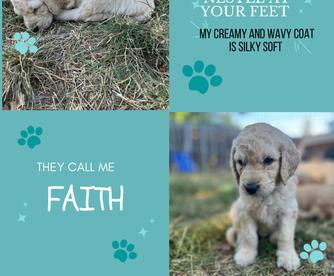 We provide the following services for your puppy: -Safe, Healthy and educated care which begins with the parent dogs -First three sets of vaccines and deworming for puppy -Vet check and complete health approval for each puppy -Microchip -Puppy welcome home kit includes: bag of puppy starter food, magnet with important dates and reminders for puppy, treats and toys, a personalized metal engraved dog tag and small blanket with moms scent to help them get adjusted in their new home. We take great delight in helping to match puppies and their personalities with the specific needs and desires of your home. We have developed great relationships with various local puppy trainers. With the help of these trainers, we provided a basic puppy training and socialization class for our first litter of puppies and their families. Everyone had a lot of fun, and we hope to do this again with this next litter. One of our puppies is currently in training as a service dog.