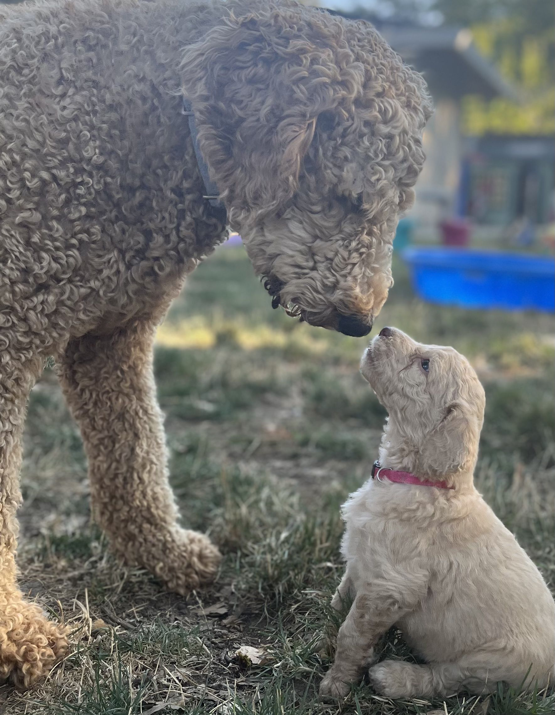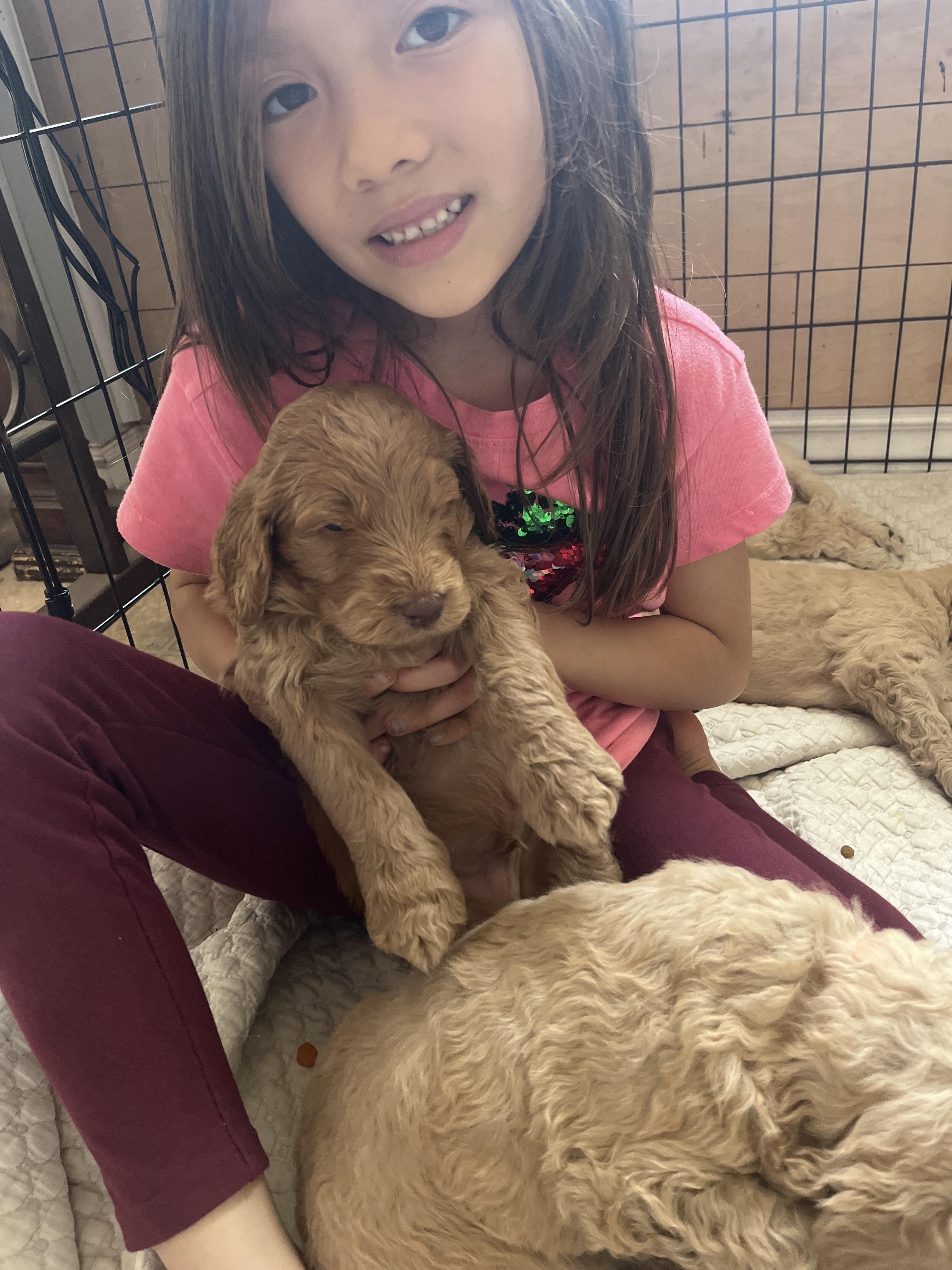 Breeding began as a family adventure. There is considerable time, effort, precision and expense that goes into breeding and raising puppies with excellence. Both of our dog parents have been DNA tested, and have passed every OFA testing (hips, eyes, elbows, heart and patella) recommended for their breeds. The puppies will be faithfully cared for in our home to help them develop a strong bond to humans. We utilize their parents to help the puppies begin basic training around 3-4 weeks. This includes potty training, introduction to crate, introduction to leash and basic commands like “sit”, “here”, and “stay”. We will provide each puppy ample opportunity to socialize with other animals, various humans of all ages/shapes/voices as well as introduce the puppies to various sounds/sights/textures and play equipment to help build their confidence.