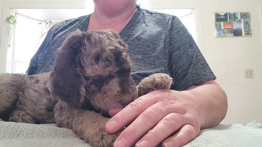 Winnie the poo is a female Poodle. Carefully selected as a great representative of her breed, Kimber decided to make her part of their program. Kimber has passed Good Dog’s screening process, which involved a review of their breeding practices, environment, and the mental and physical health of their dogs.