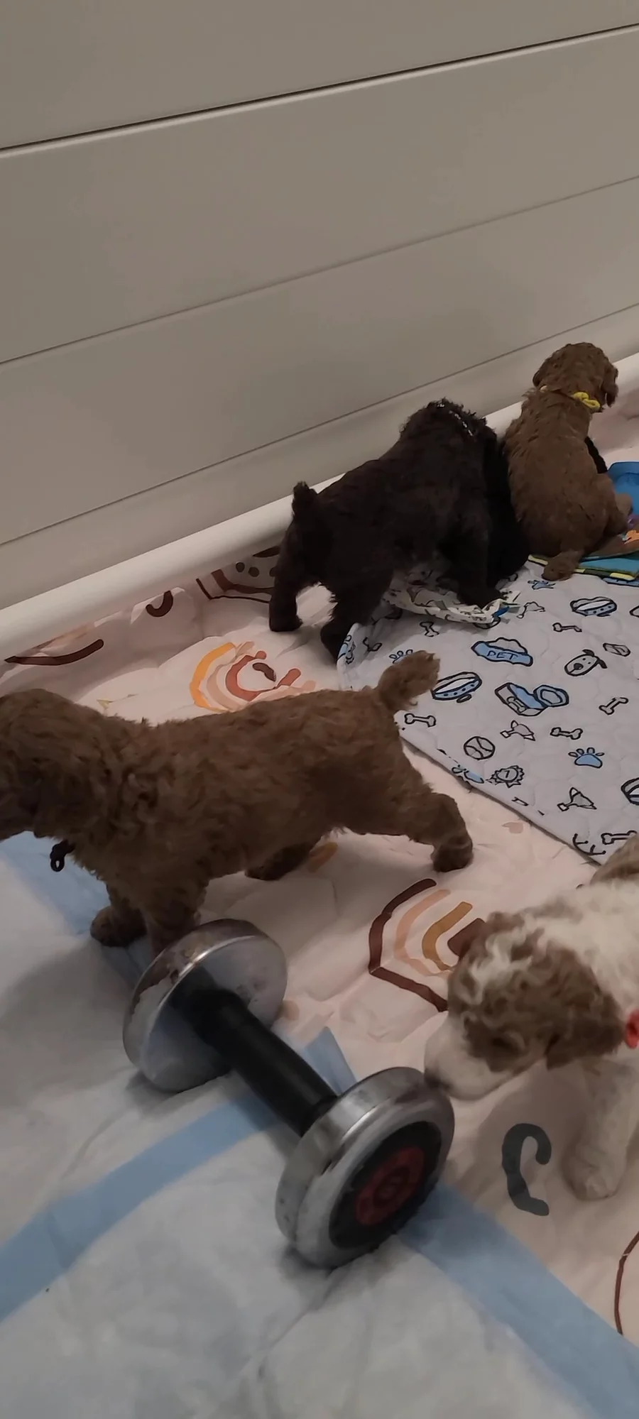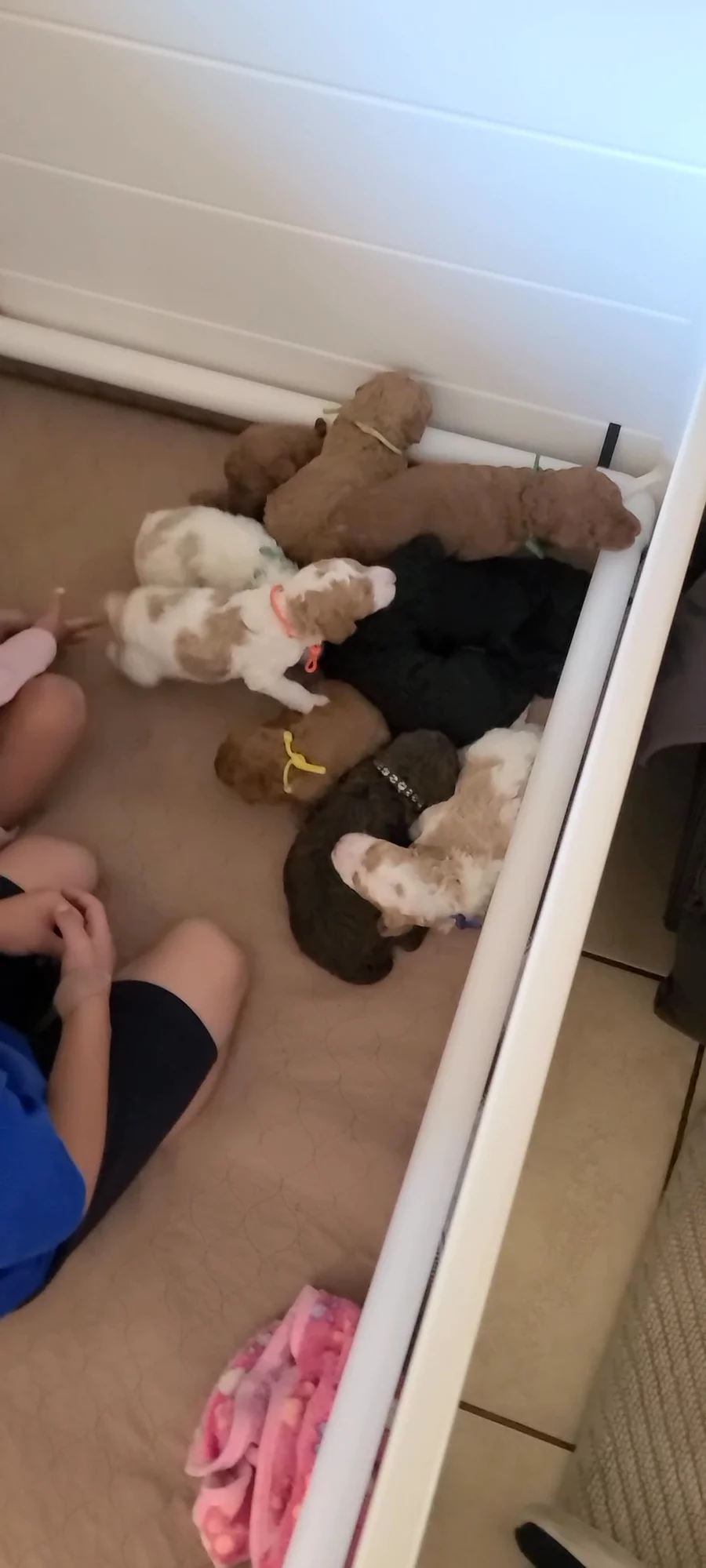 Our puppies include black, brown, red, and parti. Colors will vary depending on the parent dogs.