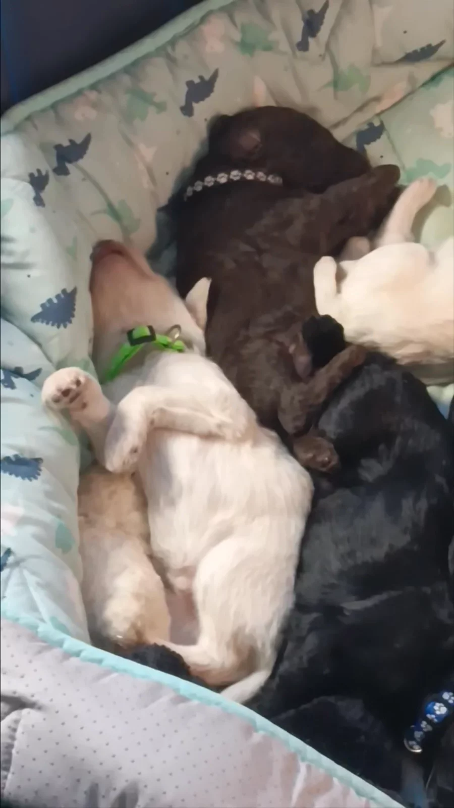 Just look at those sweet babies - finding comfy ways to sleep when Mama is not around.