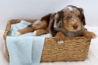 Our puppies include brown and white, blue merle, red merle, black phantom, black and white, black tri-color, red phantom, and red tri-color. Colors will vary depending on the parent dogs.