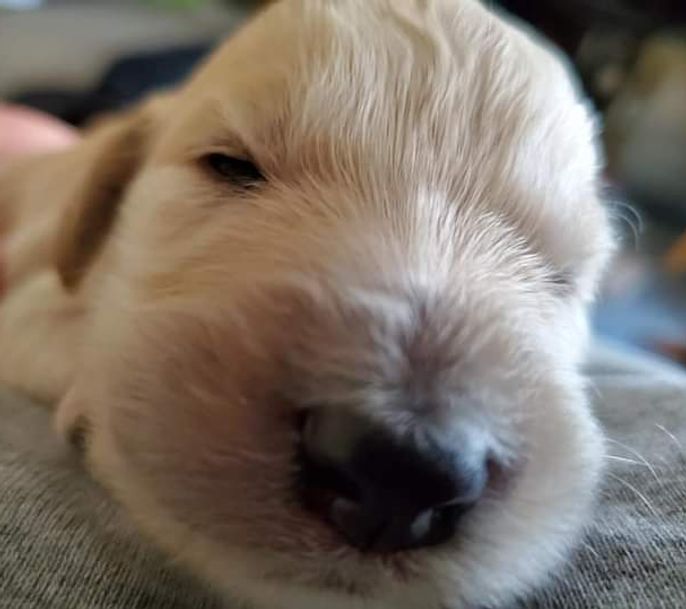 Very sweet and smart F1 labradoodle. Easy to train, loves to cuddle and play fetch.