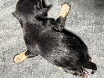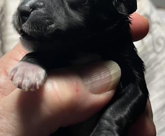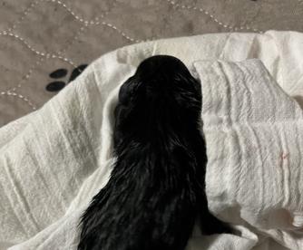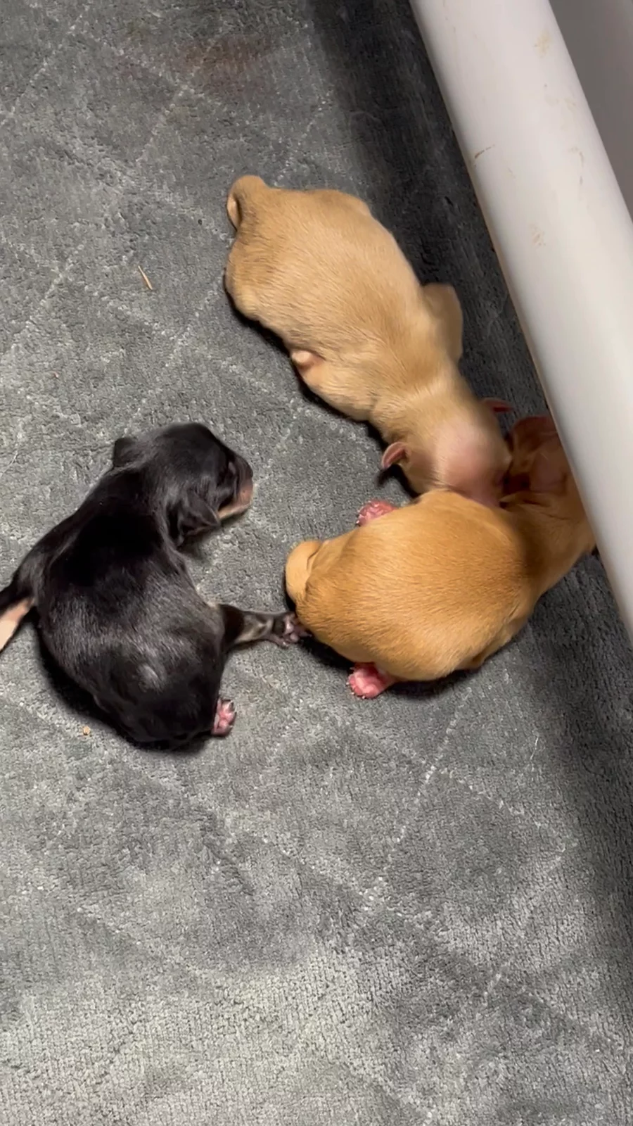 Birth of 3 happened around 8-10:30AM today. The black w/tan and the lighter cream/red will be available.