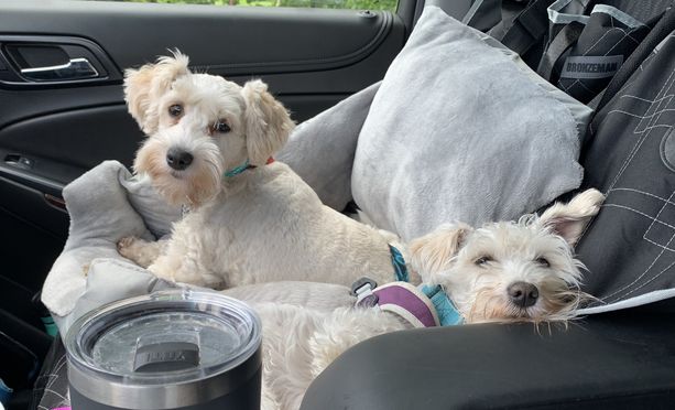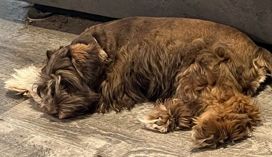 Princess Leia. See the size difference between her & Teddy. But, today is his grooming day. They all go to the vet today too.
