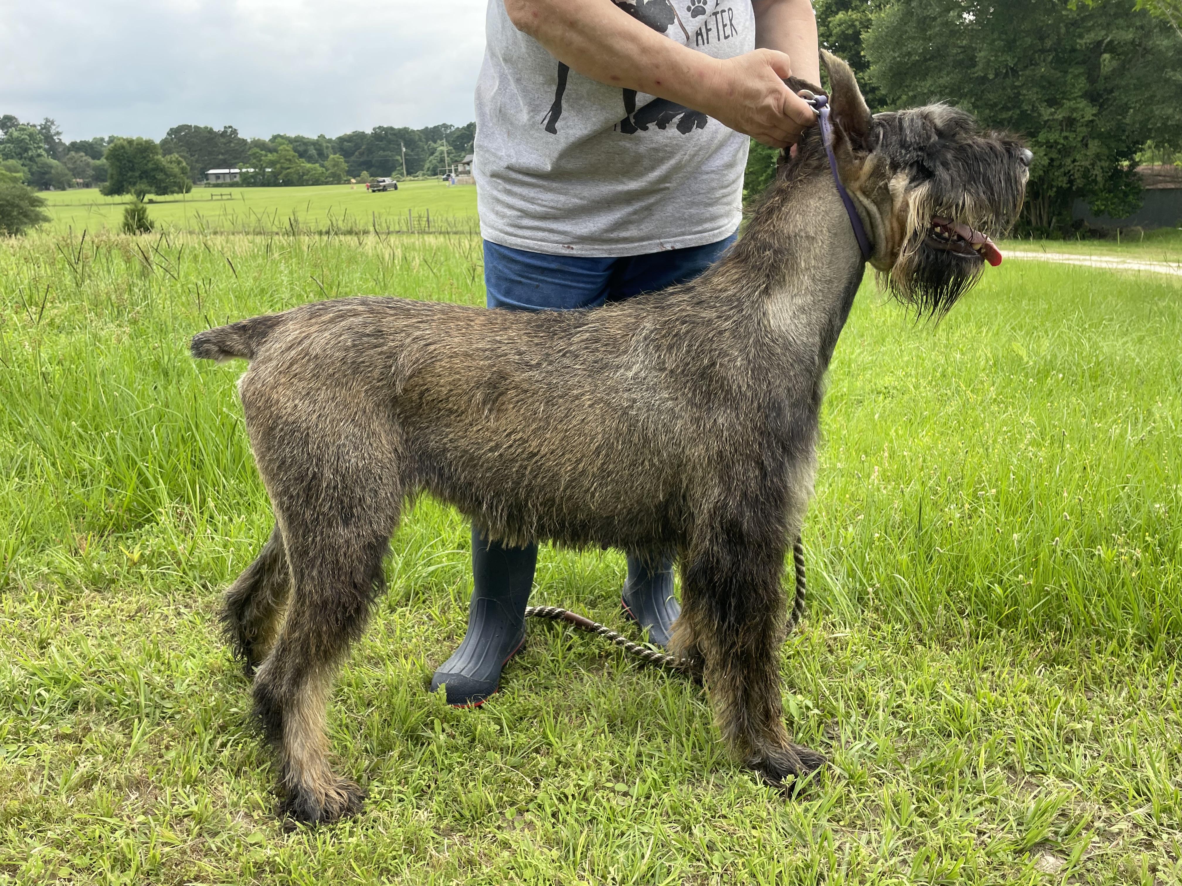 Joyce ears are natural and tail is docked. Hard coat, pepper and salt.