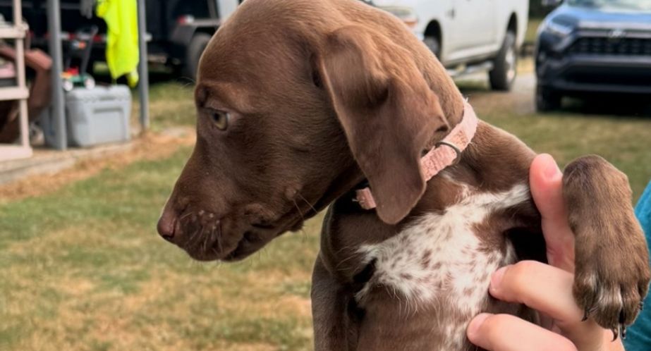 Gunner is a male German Shorthaired Pointer. Carefully selected as a great representative of his breed, Dakota decided to make him part of their program. Dakota has passed Good Dog’s screening process, which involved a review of their breeding practices, environment, and the mental and physical health of their dogs.