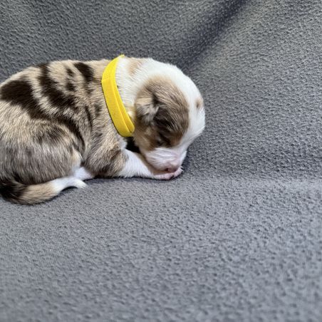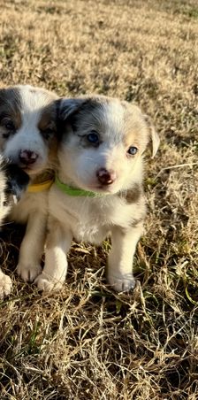 Our puppies include lilac merle, blue merle, red merle, red, and white and red. Colors will vary depending on the parent dogs.