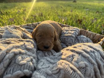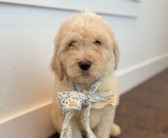 Cowboy is a male Goldendoodle. Carefully selected as a great representative of his breed, Courtney decided to make him part of their program. Courtney has passed Good Dog’s screening process, which involved a review of their breeding practices, environment, and the mental and physical health of their dogs.