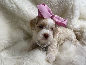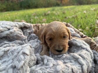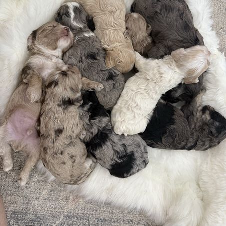 Our Goldendoodle puppies include cream, apricot, red, chocolate, black, phantom, merle, and parti. Cavapoo puppies include merle, black and tan, chocolate, apricot, and blenheim. Colors will vary depending on the parent dogs.