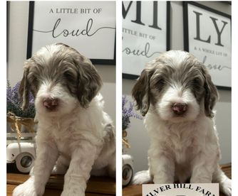 I'm Lisa H., the breeder behind Silver Hill Farm SC located in Lancaster, SC. We strive for a high level standard providing the best qualities and genetics of the breeds of our dogs. We strive to place well balanced puppies in their Furever approved homes. We breed Multigenerational puppies with soft fleece wavy coats with wonderful family friendly temperaments and personalities where health and overall conditions is top priority.