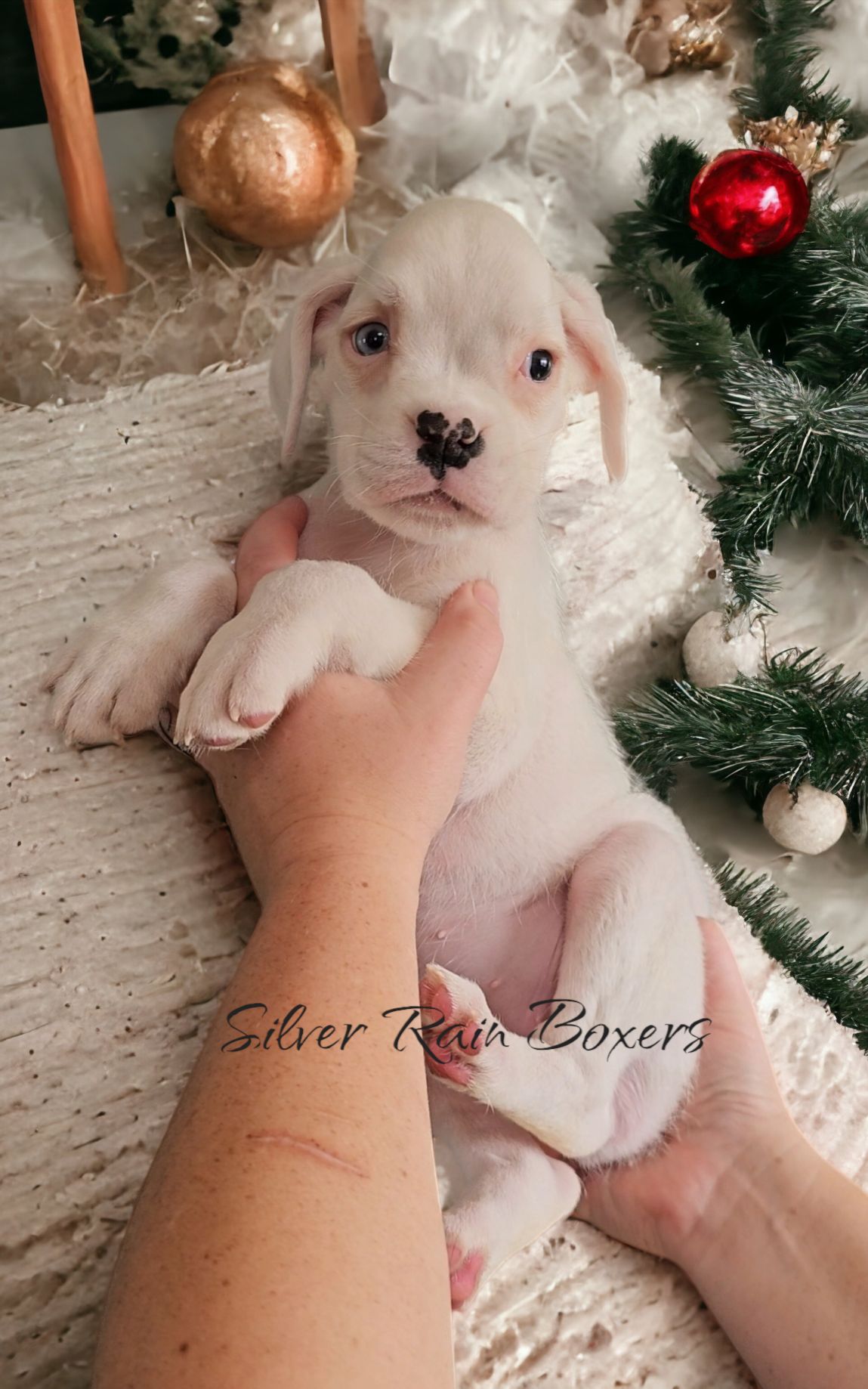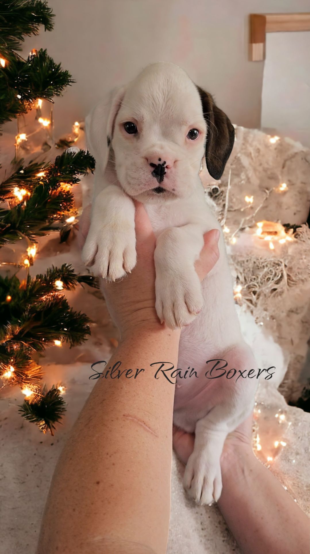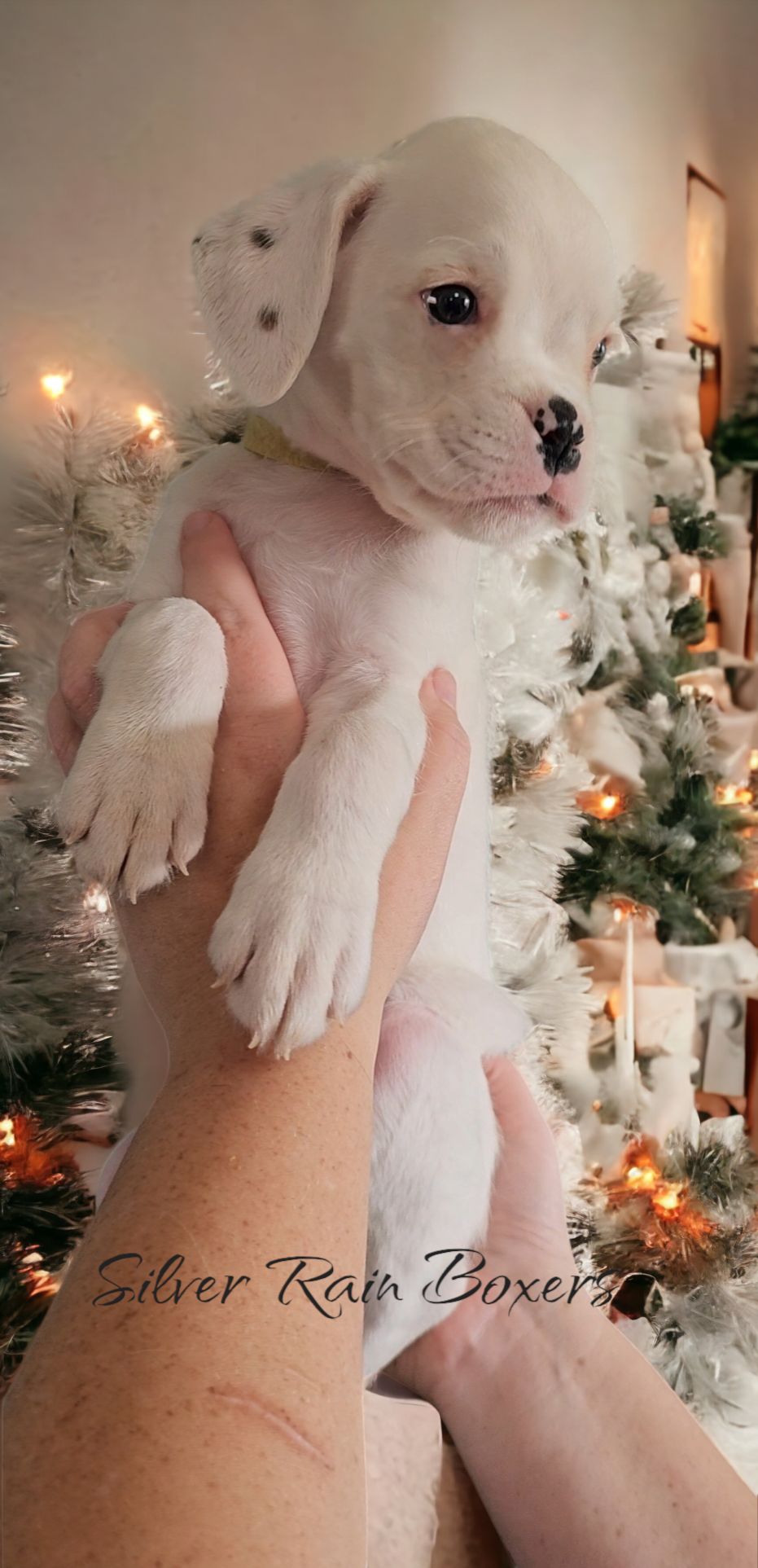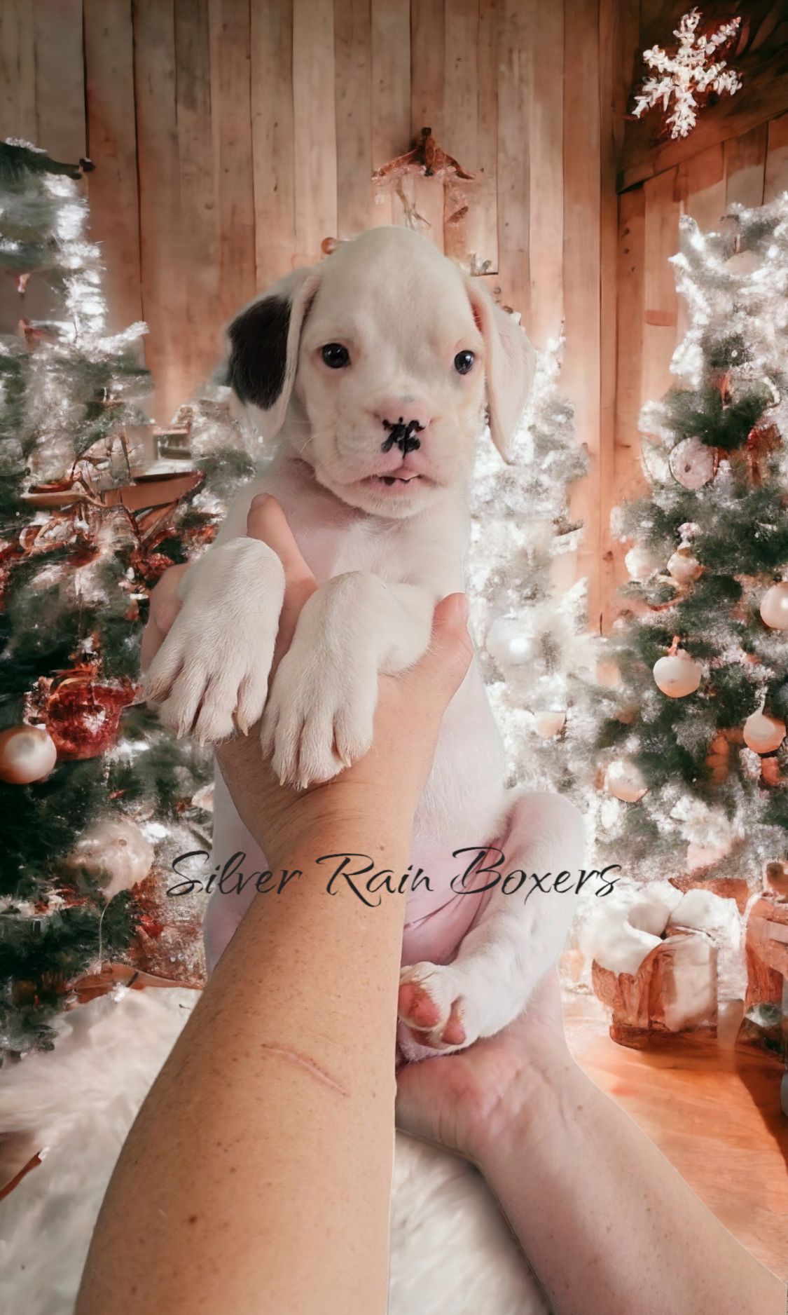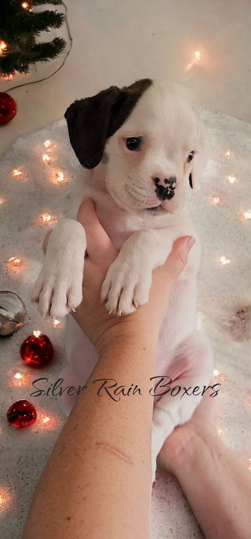 We have a white boxer, Hank. Hank has had the privilege of living with some senior pups and learning the ropes. However, he has lost two of his best friends/siblings within a year. Hank was so upset and we just couldn’t get him out of his funk. This is where I found Danielle of Silver Rain and her new babes. Ozzy (formerly known as Rocky) caught my eye immediately. He’s the sweetest babe and has been a god-send for Hank. Danielle was very responsive and a pleasure to work with. Thank you, Danielle, for helping Hank get over his blues and affording us to have Ozzy in our lives.