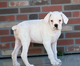 Our puppies include fawn, brindle, and white. Colors will vary depending on the parent dogs.