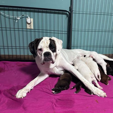 I'm Dannielle B., the breeder behind Silver Rain located in Red Boiling Springs, TN. Over 16 years I've worked to improve my Boxer puppies with health testing, socializing, and feeding schedules. I prefer to breed the FCI European standard.