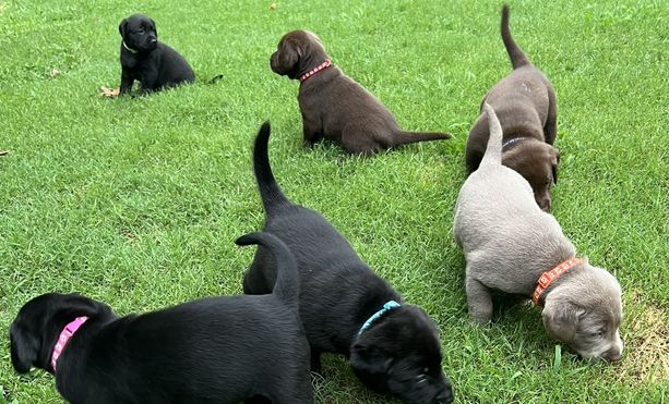 Our Labrador Retriever puppies include black and chocolate. Dilute Retriever puppies include silver, charcoal, black, chocolate, and fox red. Colors will vary depending on the parent dogs.