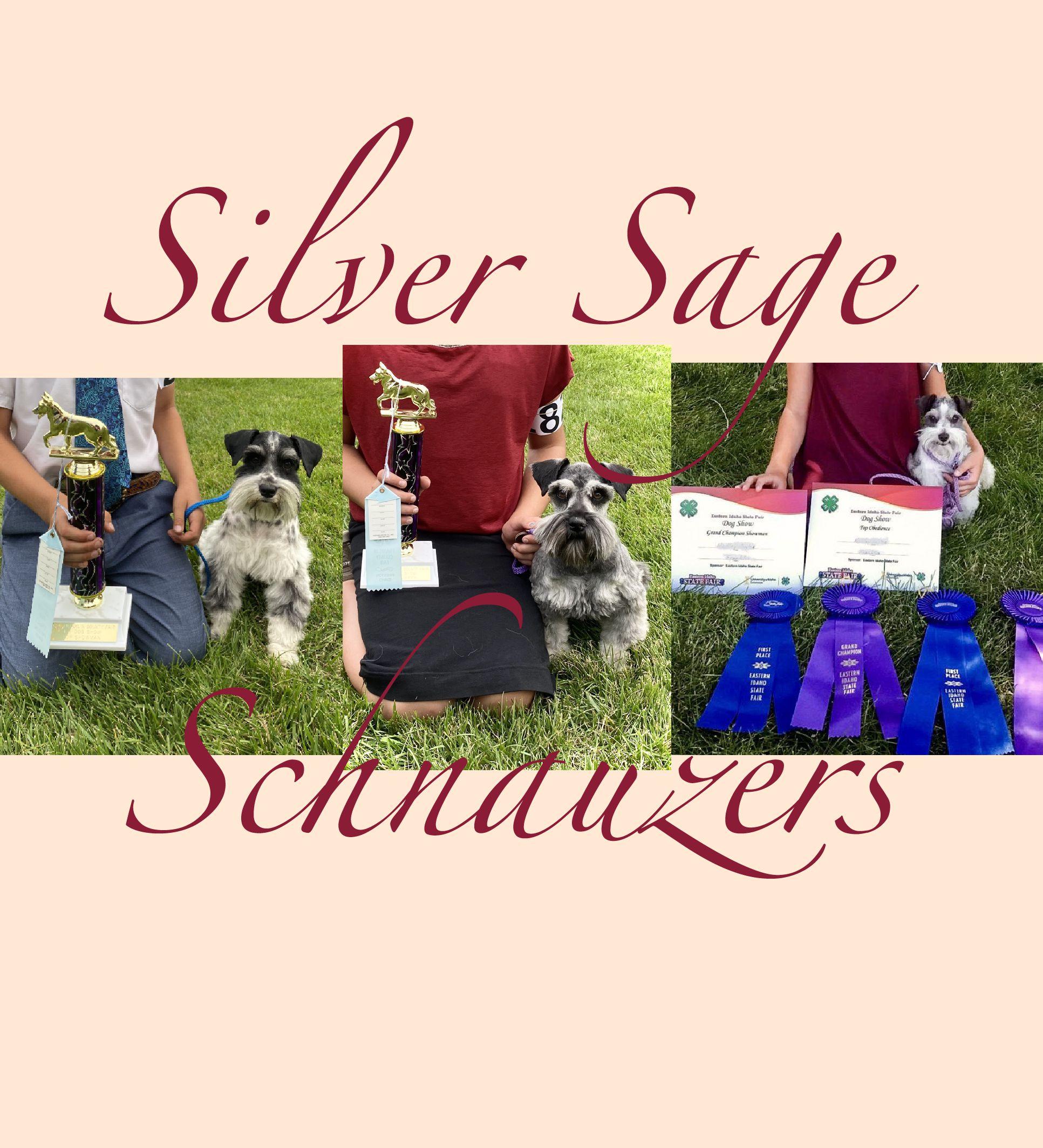 At Silver Sage Schnauzers all of our dogs are part of the family. We compete with them in obedience competitions and our children participate in 4-H, showing in both showmanship and obedience. All of our breeding dogs are AKC registered, receive in-depth temperament evaluation and appropriate health and genetic testing.