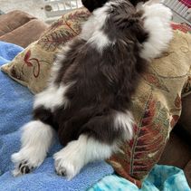 Ivy is our gorgeous liver pepper girl with a huge, soft mega coat. She is a calm, easy going dog who loves to just hang out by your side. She is clear on all genetic tests through Embark, as well as normal on her OFA heart, eye, and patella exams.