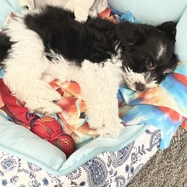 “All of our babies come home up to date on all age appropriate vaccinations and deworming, a 7-8 week detailed veterinary health exam, microchipped and quality socialization. We require a non-refundable deposit to hold a puppy that of course goes toward the total purchase price.”