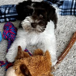 Cash is the happiest little guy. He has never met a stranger and loves everyone. He is a striking black and silver. He has won awards in showmanship and obedience with our children. He is so easy to train and is everything you could ever want. He has been genetically health tested through Embark and is clear on everything. He also has been OFA tested for eyes, heart, and patellas.