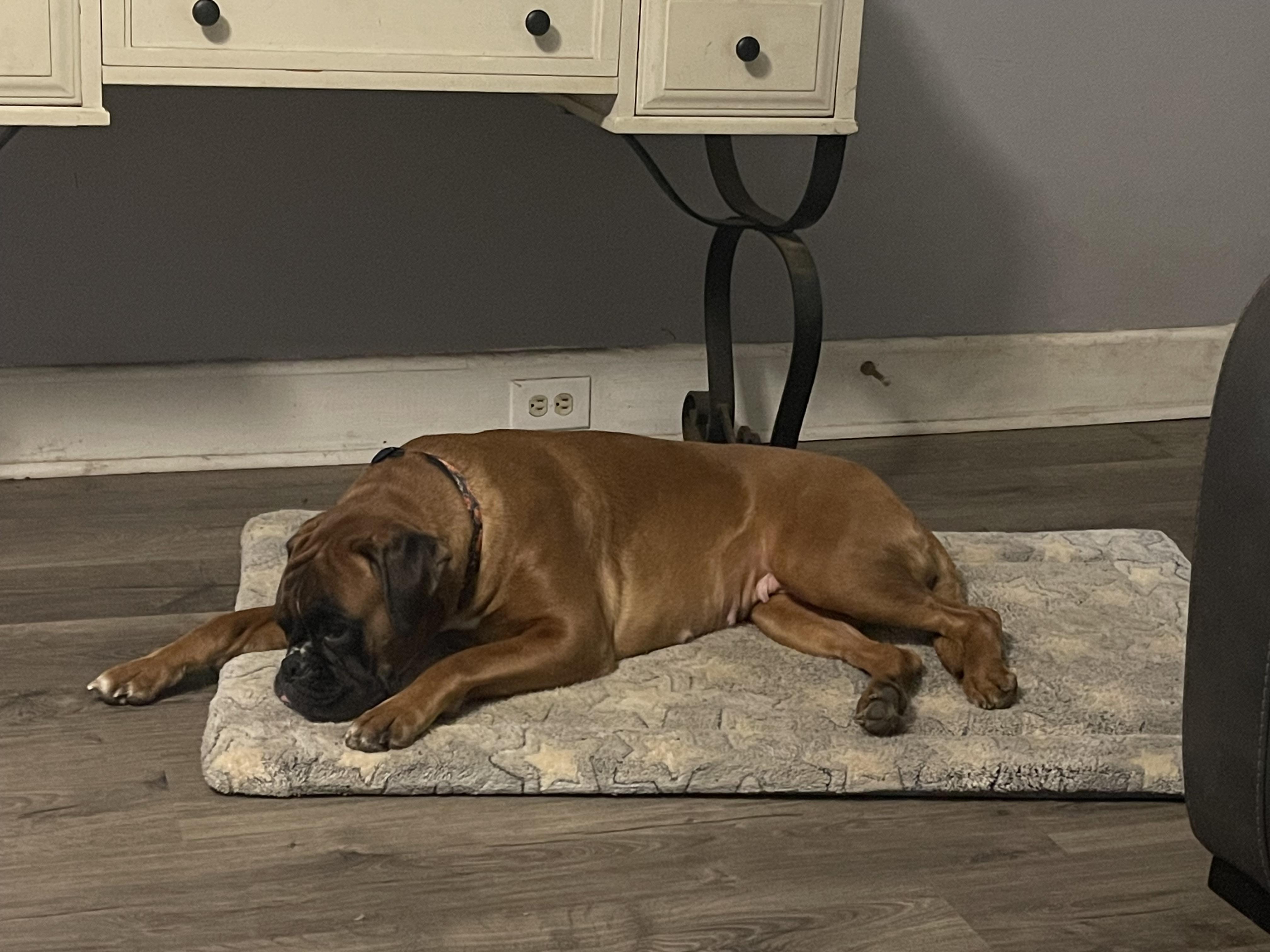 Apollo is a male Boxer. Carefully selected as a great representative of his breed, Bill decided to make him part of their program. Bill has passed Good Dog’s screening process, which involved a review of their breeding practices, environment, and the mental and physical health of their dogs.