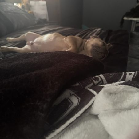 Treasures of 3 1/2 year-old French bulldog. She has a very sweet temperament and is very active. She likes to go for walks and car rides.