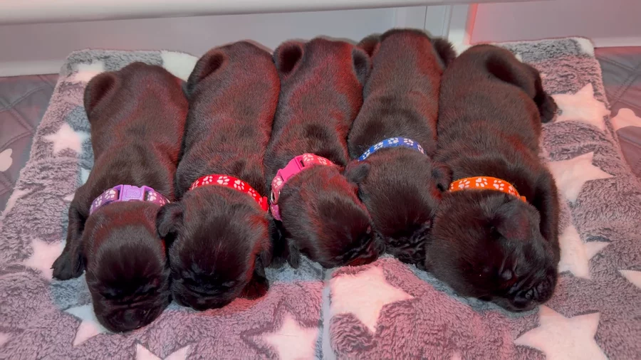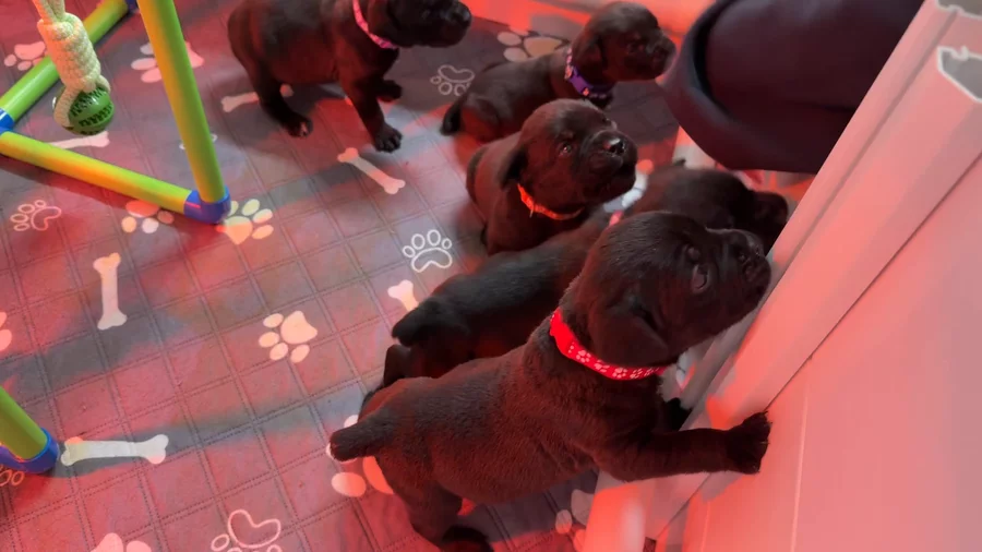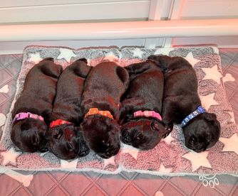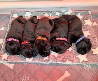 Our puppies include black and black brindle. Colors will vary depending on the parent dogs.