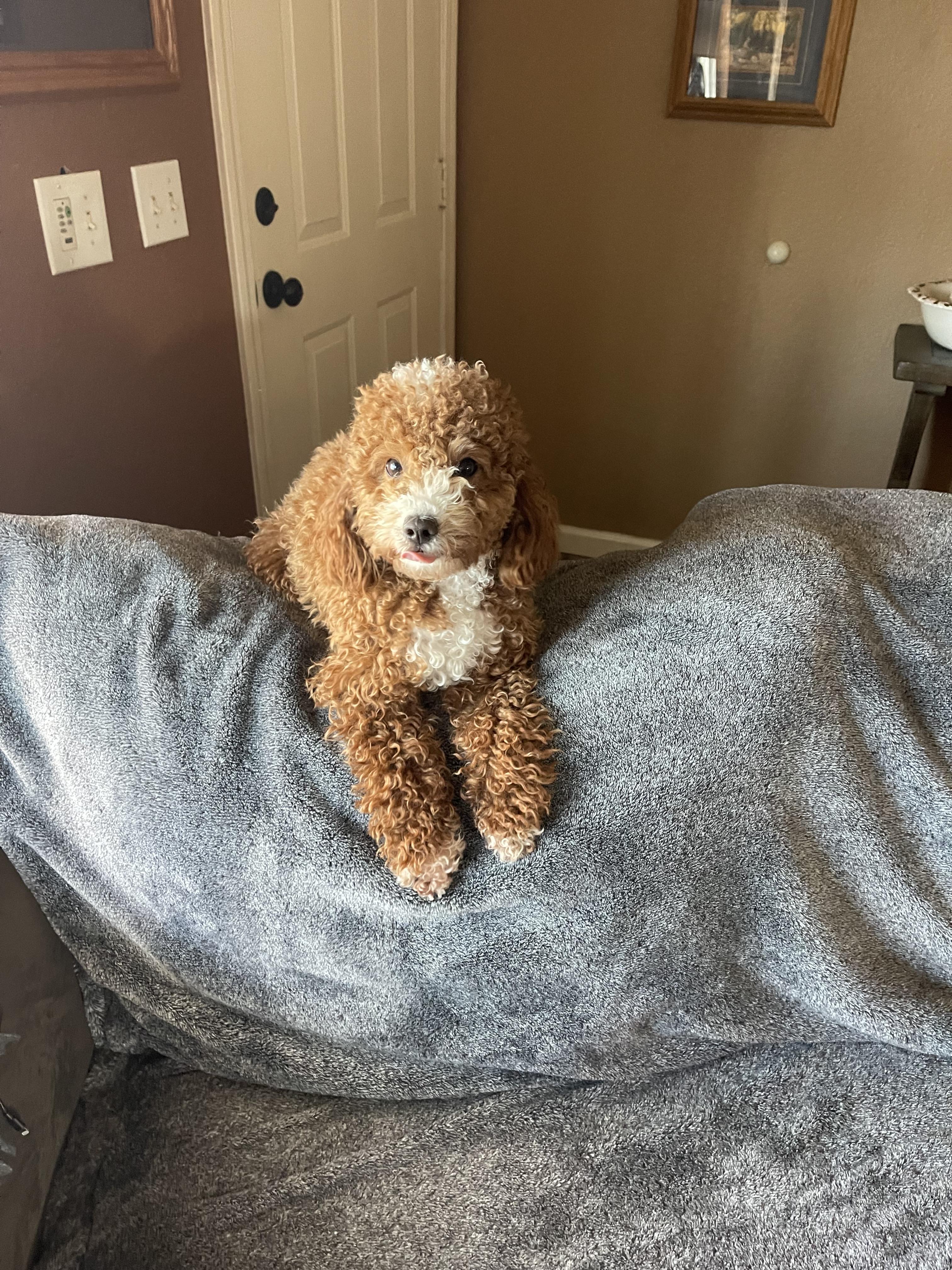 Cash is a male Poodle. Carefully selected as a great representative of his breed, Karen decided to make him part of their program. Karen has passed Good Dog’s screening process, which involved a review of their breeding practices, environment, and the mental and physical health of their dogs.