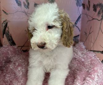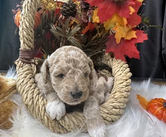 Millie is very shy at first, but once she gets to know you, she warms up well. She is a beloved family pet. Puppies are raised indoors with love and attention.
