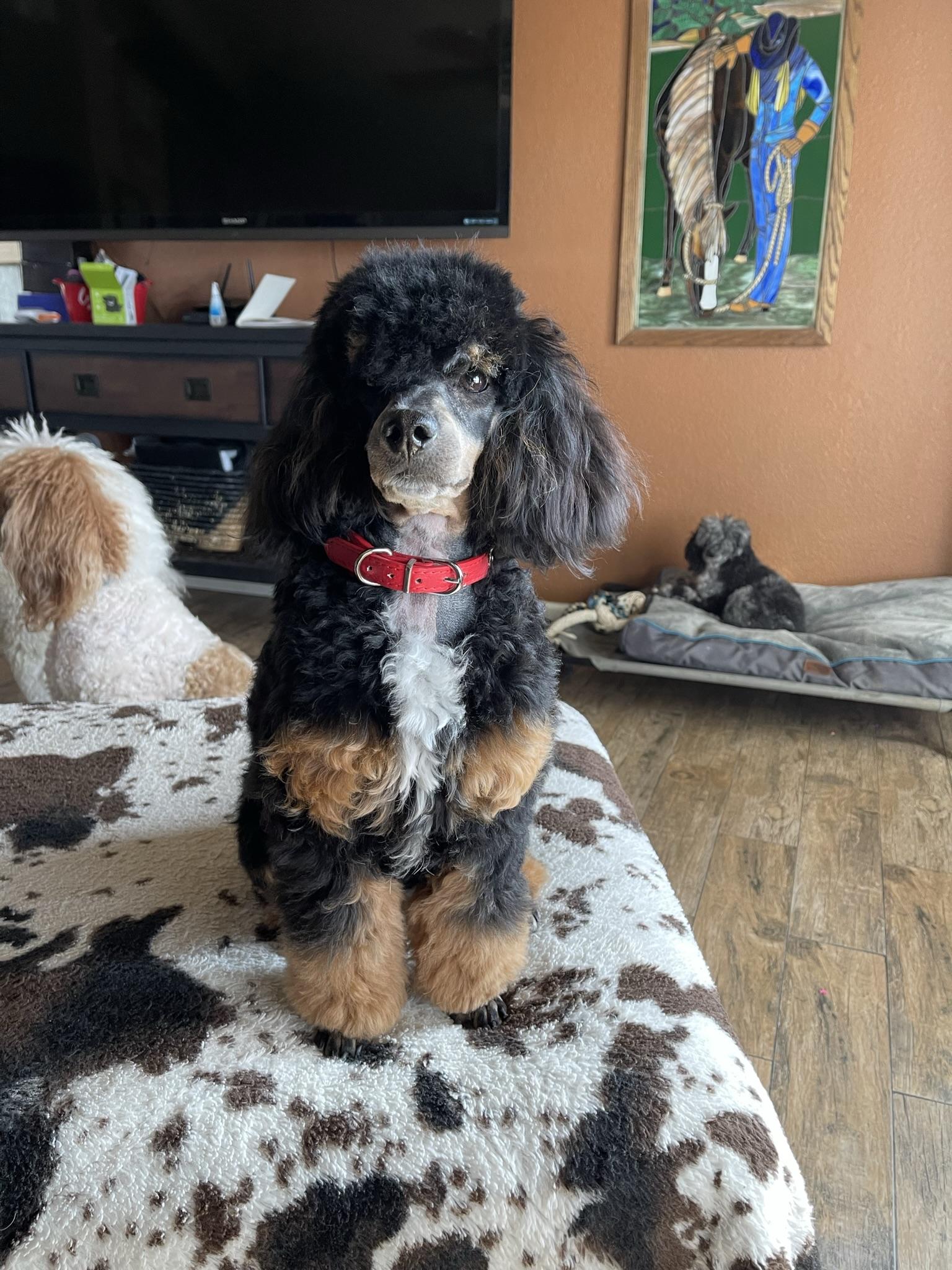 Sky is a female Poodle. Carefully selected as a great representative of her breed, Karen decided to make her part of their program. Karen has passed Good Dog’s screening process, which involved a review of their breeding practices, environment, and the mental and physical health of their dogs.