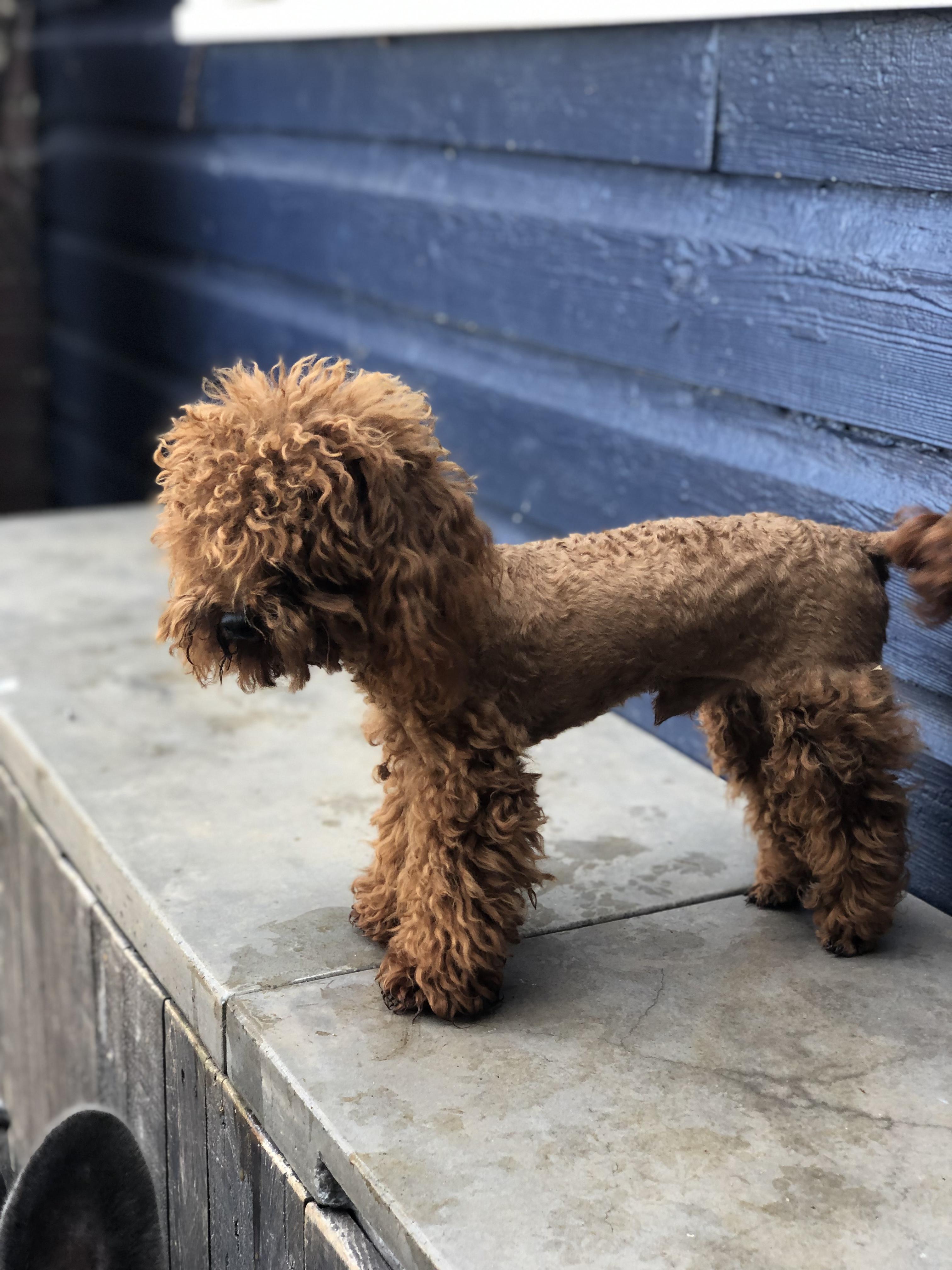Tilly is a female Poodle. Carefully selected as a great representative of her breed, Kim decided to make her part of their program. Kim has passed Good Dog’s screening process, which involved a review of their breeding practices, environment, and the mental and physical health of their dogs.