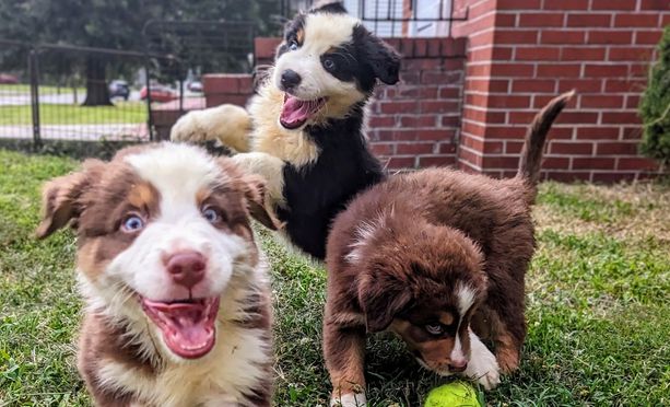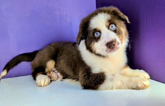 Our puppies include red merle, blue merle, black tri-color, and red tri-color. Colors will vary depending on the parent dogs.