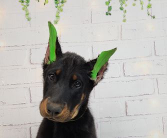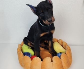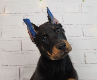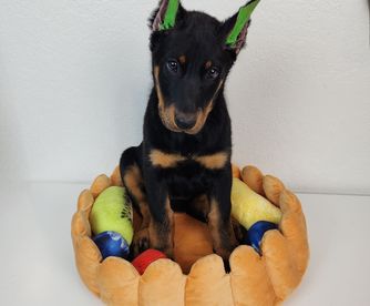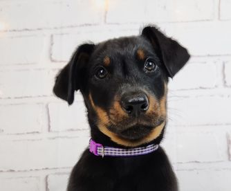 Our puppies are black and rust. Colors will vary depending on the parent dogs.